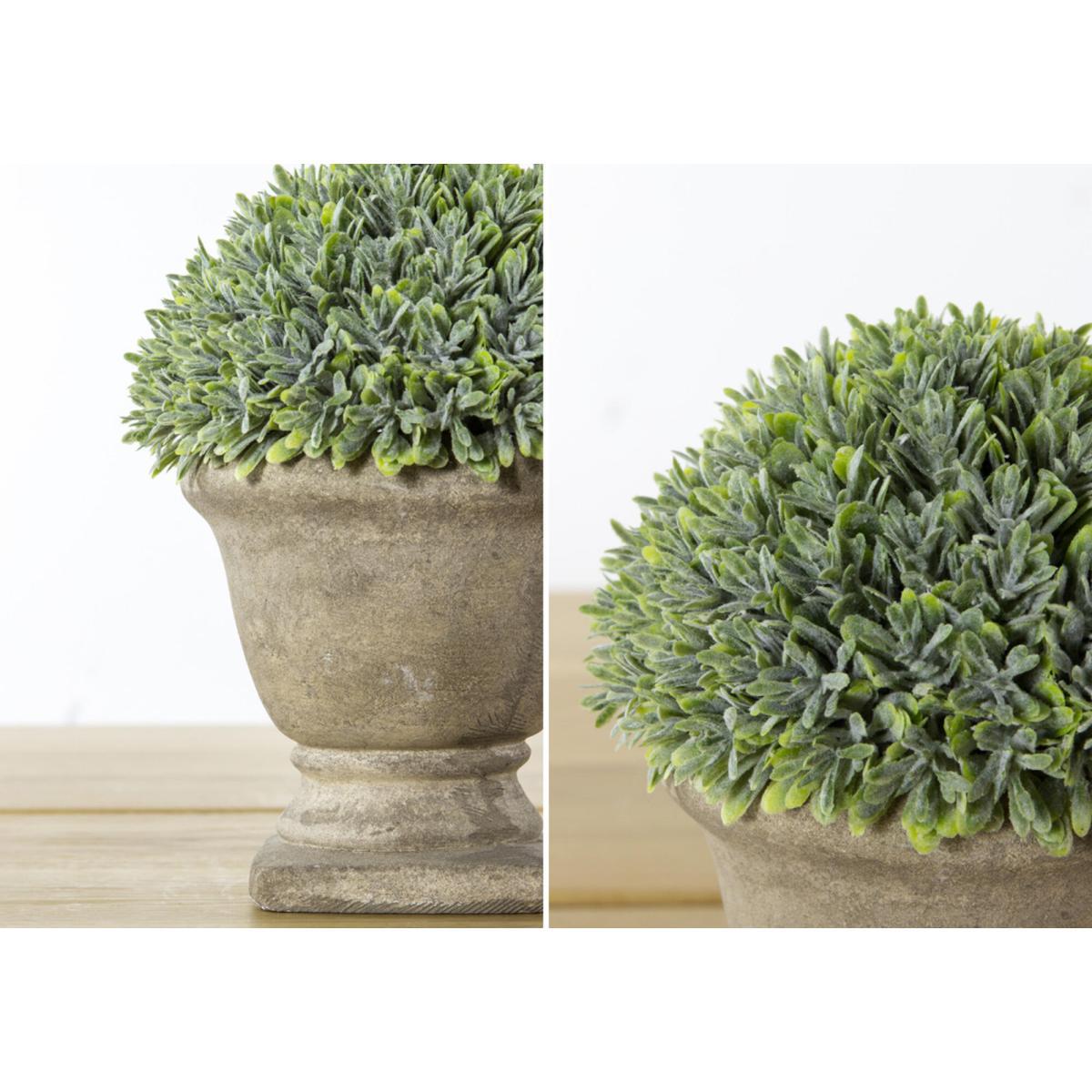 Bring a traditional touch of the outdoors into your space with the Annika Stone Effect Urn with Shrub. This age Stone effect planter houses a Green Boxwood style plant to bring some greenery indoors - without the need for maintenance! Classical elegance.