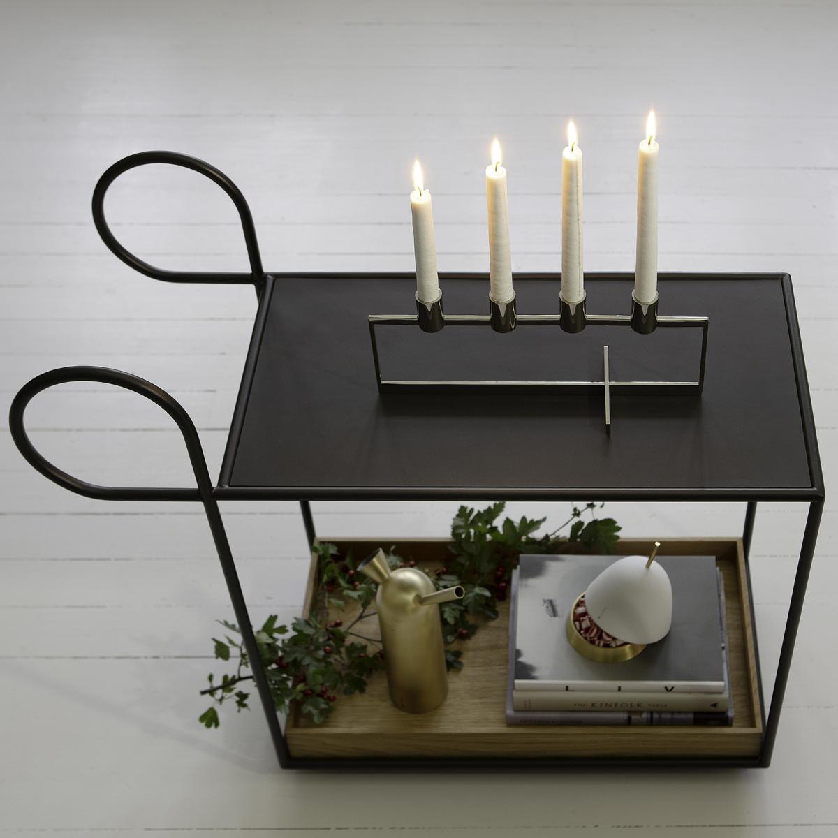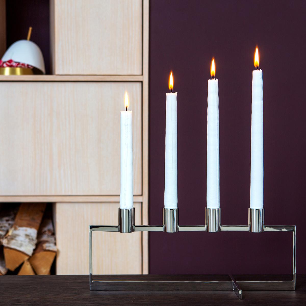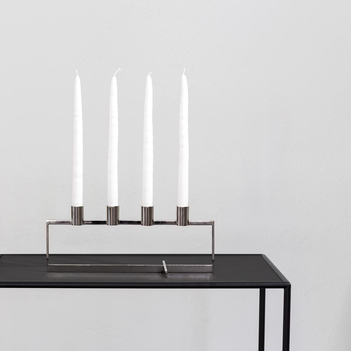 The Anno Domino candlestick from KLONG is an advent candlestick in a new, minimalistic style. The support placed between the third and fourth candle holder makes the form of a cross when seen from above.