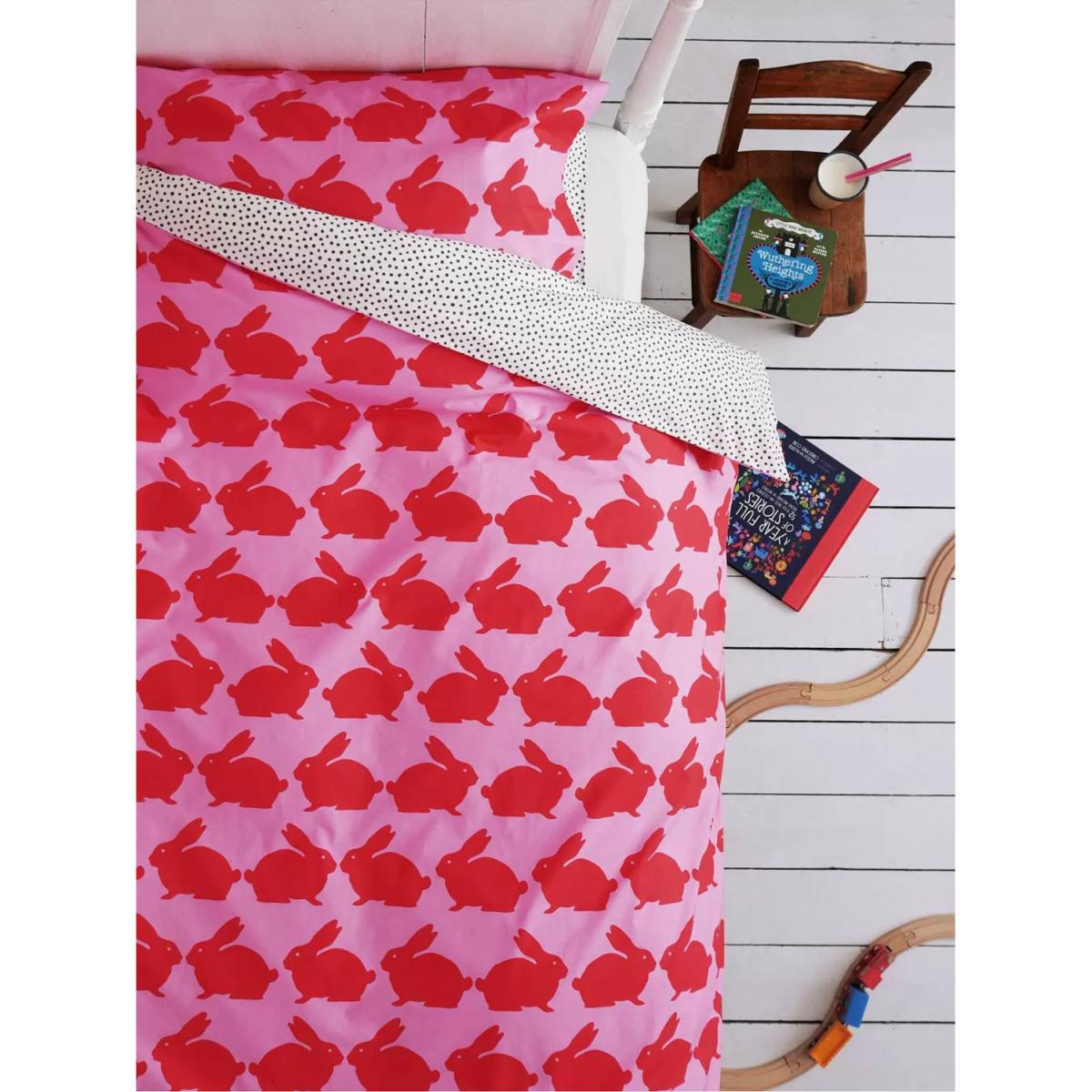With a cute and vibrant bunny print on the front and a contrasting spot print on the reverse, this super-soft bedding set will add an element of surprise to their bedroom. It's made from 200 thread count organic cotton which will help to keep them cool and comfortable during the night. Good to know The single set comes with one standard pillowcase and the double set comes with two standard pillowcases.