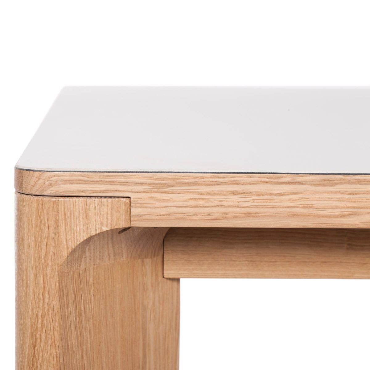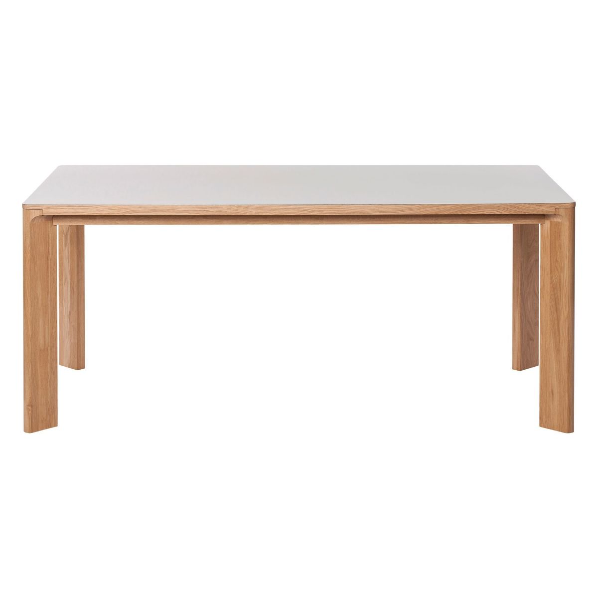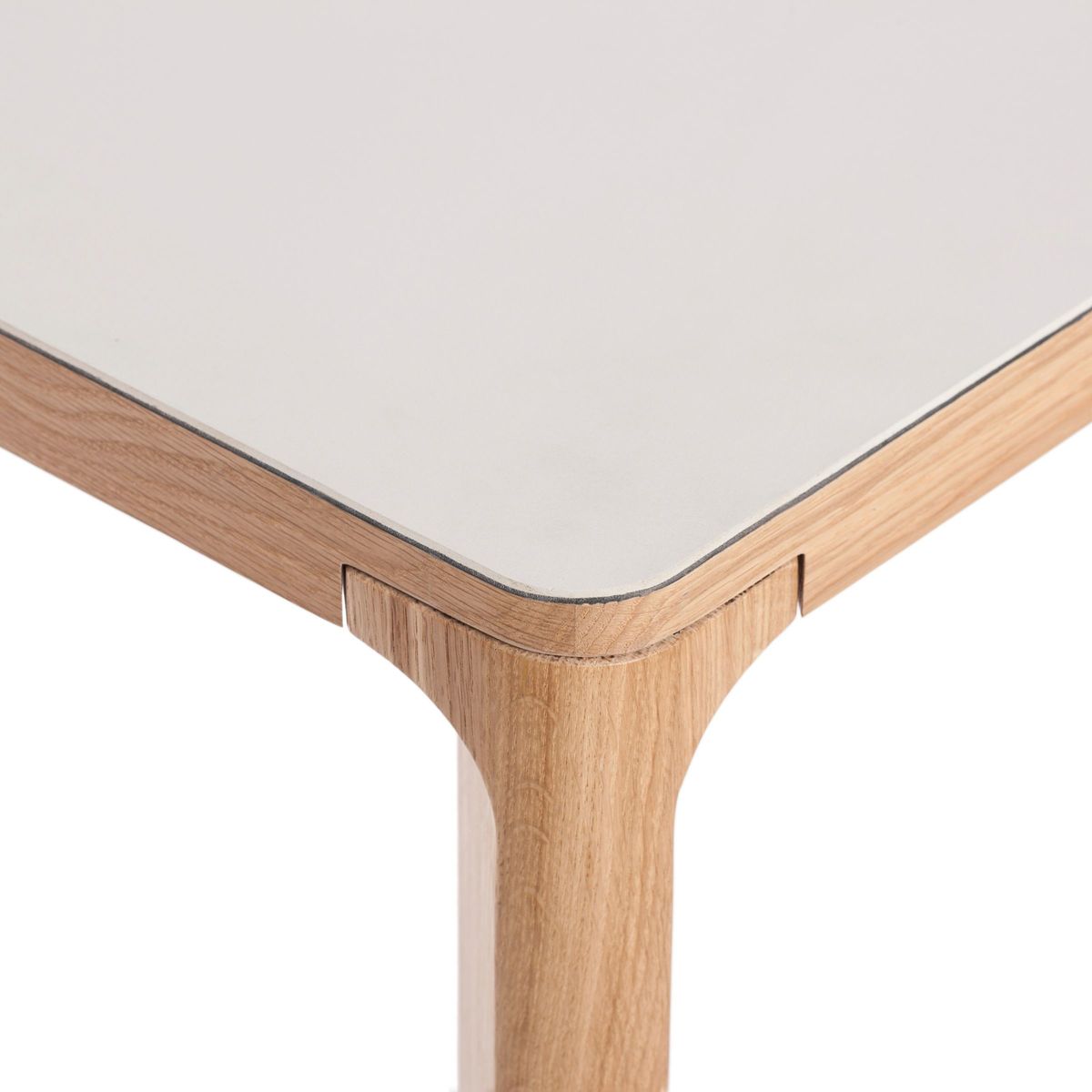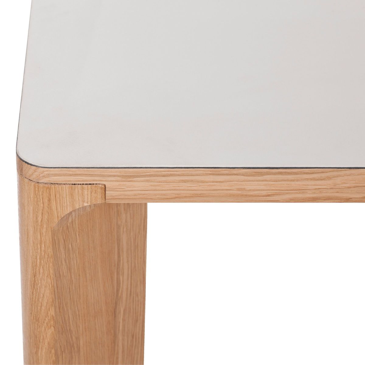 The Lastra dining table from Another Brand lends robust design to contemporary appeal. Crafted from solid oak and oak veneer, its linoleum surface is finished with a protective water-based lacquer, that complements the earthy, natural quality of its strong wooden frame.;The durable surface actively resists the build-up of static charges so dust and dirt won't stick, and your dining tabletop remains hygienic, clean and fingerprint free. Simple, yet sculpted, this dining table will bring a Scandi-inspired styling touch to your home, and will comfortably seat up to 8 diners.