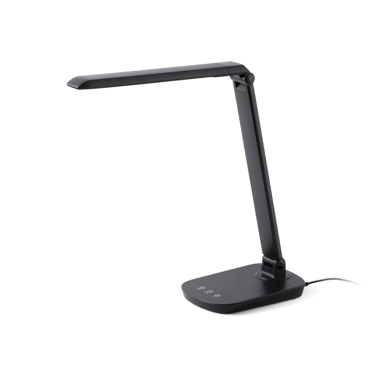 This black table lamp has a slim design which allows it to fit onto smaller spaces and gives it a neat look. The fitting uses dimmable LED light to keep energy consumption down while providing plenty of light. The fitting is adjustable at two points, allowing you to face the light at the most effective angle. The table lamp is complete with a separate switch, and a USB port for convenience.