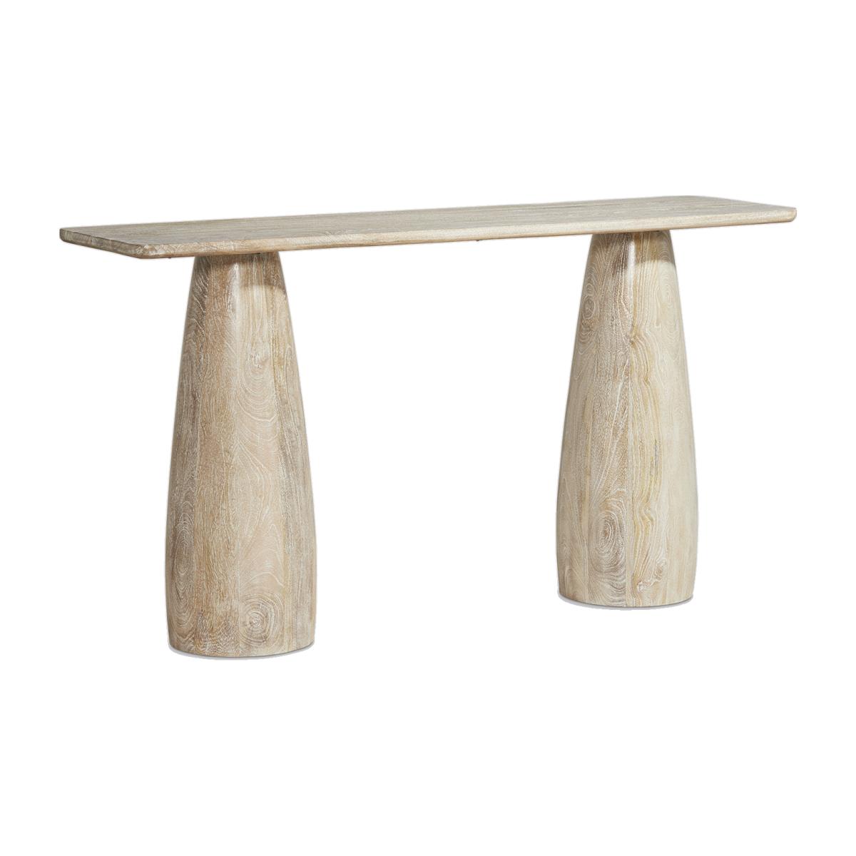 I love this console table because of its versatile, natural look that works well in both contemporary and rustic interiors. Its earthy tone and simple, sculptural form make it an ideal piece for creating a welcoming entryway or a pretty backdrop in a living space. Practical styling tips include layering with decorative objects like vases, books, or small artwork to add character, or using it as a base for a statement lamp. It also pairs beautifully with mixed materials like brass or textured ceramics, helping to add interest without overpowering the space. This piece is functional yet understated, making it a good investment for adding warmth and personality to a variety of interiors.