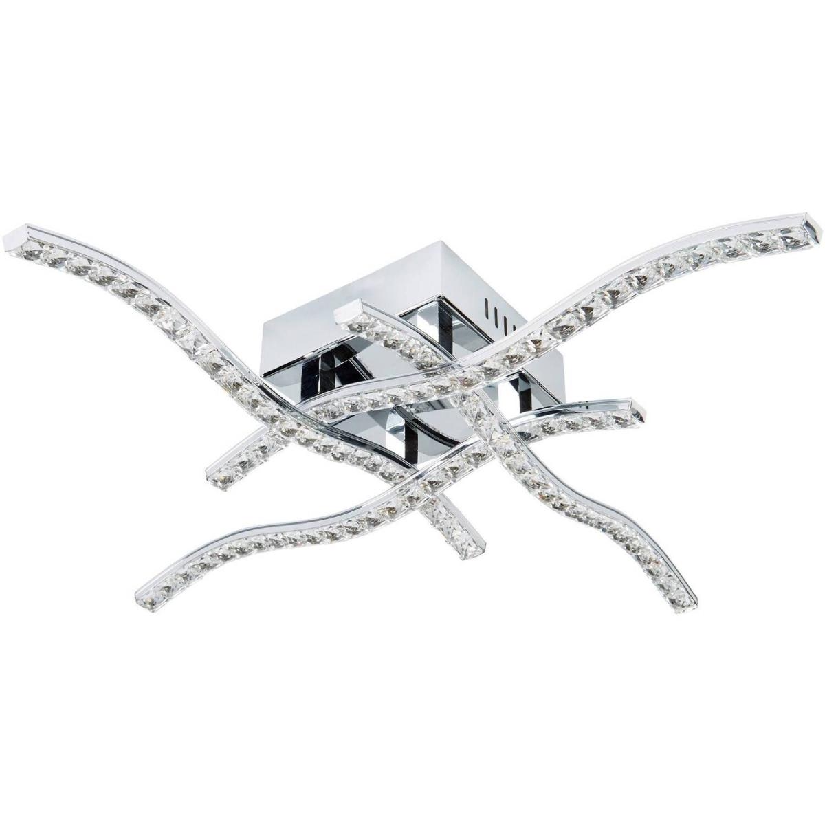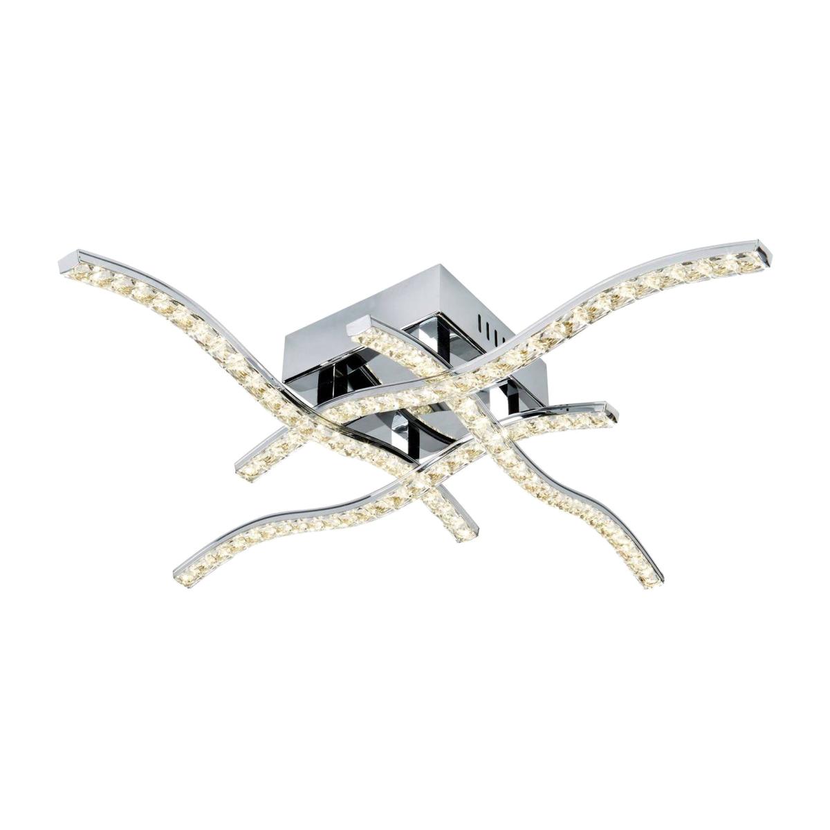 With a unique design this chrome ceiling flush will turn heads and bring style to your home. The lights sit within 4 slightly curved cross over arms decorated with a clear crystal trim. It brings an air of style and contemporary glamour that is suitable for a chic home setting. The square chrome base can be easily attached to your ceiling. LEDs use up to 85 less energy and last up to 20 times longer than incandescent bulbs. Class two. Also available in a three-arm version.