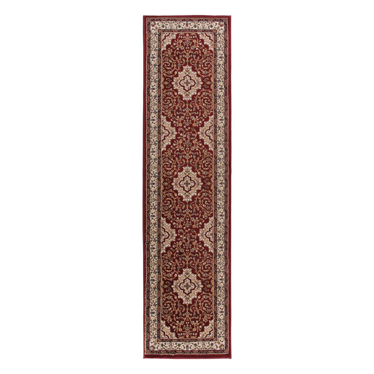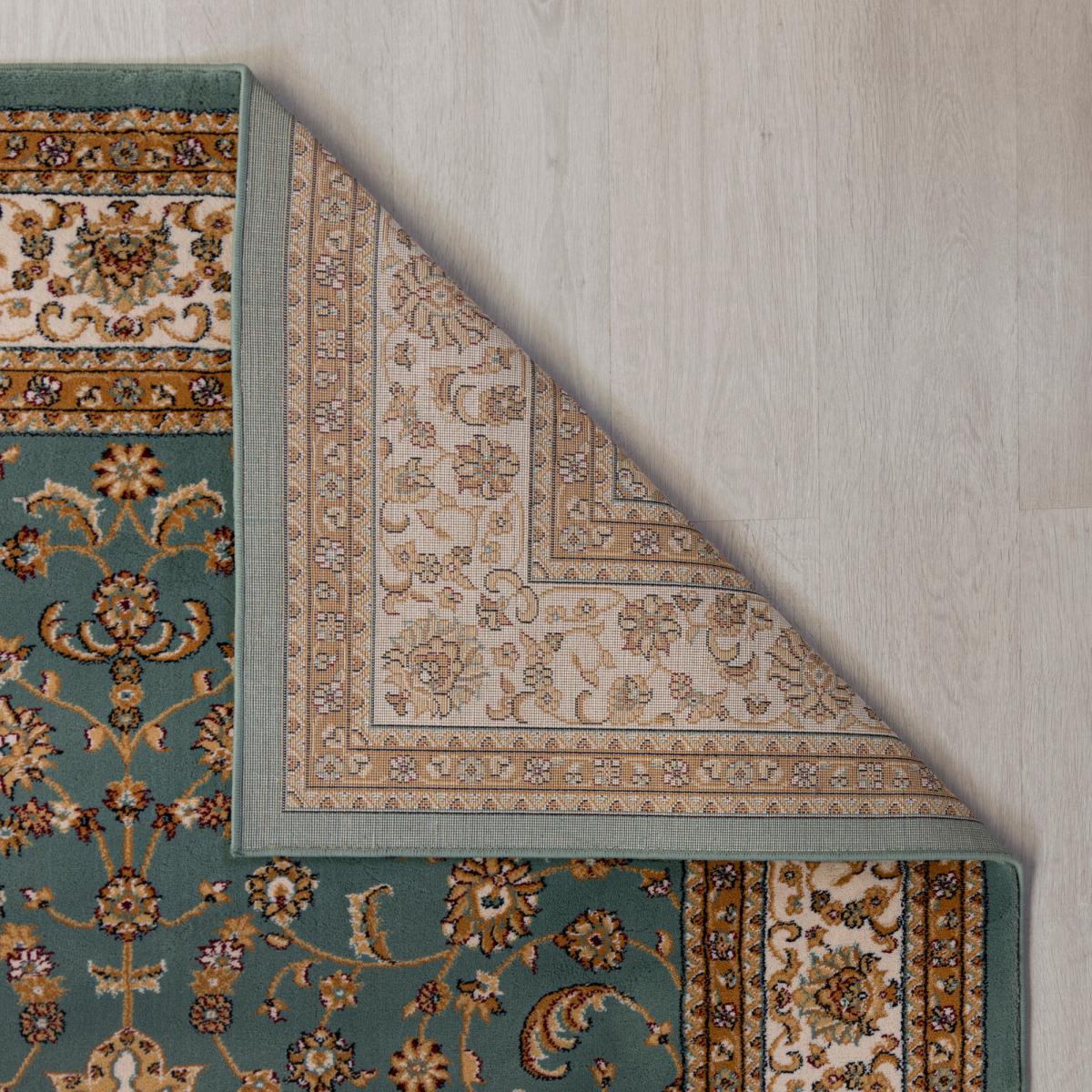 Elegantly crafted in a traditional design, this stylish runner is machine-made, boasting minimal shedding properties and providing a perfect statement piece for any living space. Made from durable polypropylene, this elegant runner features a dense short pile with jute backing and offers a stain-resistant quality, ideal for high traffic areas. Don’t forget to buy our anti-slip mat. Here. This is a hard-wearing machine-made runner. When opening, re-roll your rug pile out and leave in a warm room for 24 hours before putting in place, this will help to reduce wrinkles and curling from packing. A small amount of fibre loss is normal on a new rug. Do not pull any loose threads, please cut them carefully with scissors to remove. Avoid prolonged exposure to direct sunlight as this may cause fading of the colour. Turn your rug regularly to ensure even wear and reduce pressure marks from furniture. Before using any cleaning products on your rug, test on an inconspicuous area first to ensure it does not affect the colour. Clean spills immediately by blotting with a clean dry white cloth - do not rub as this may stain the fibres. Vacuum your rug regularly to remove everyday dirt, we recommend the use of a suction type vacuum cleaner as a rotating vacuum brush can cause damage to the pile surface. We recommend the use of an anti-slip mat beneath your rug to prevent it from slipping and sliding out of place. Latex is used on the back of this rug. Please do not leave babies or young children unsupervised on this rug.