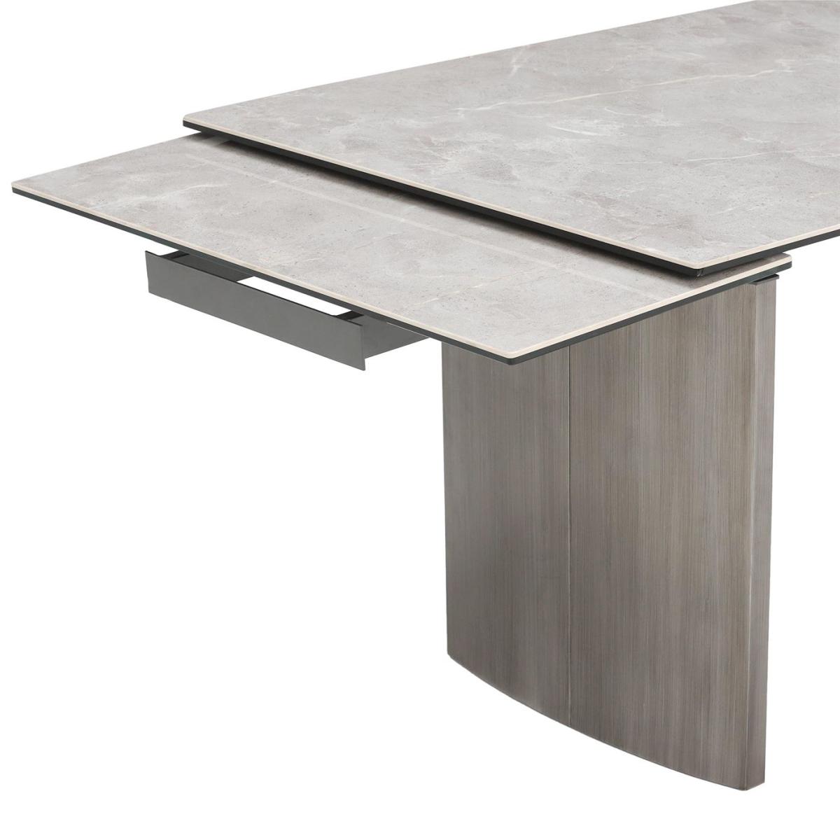 Design. Mastering an ultra-modern style through a streamline surface that blends natural ceramic with glass substrate to achieve a glorious marble effect, the Antero Extending Dining Table is sure to add effortless elegance to any home. A great focal point for dining areas, the Antero’s extending feature is easily accessible, with a leaf stored at either end of the table, that can be extended or retracted by holding the bar under the extension, for whenever luxurious extra space is needed.