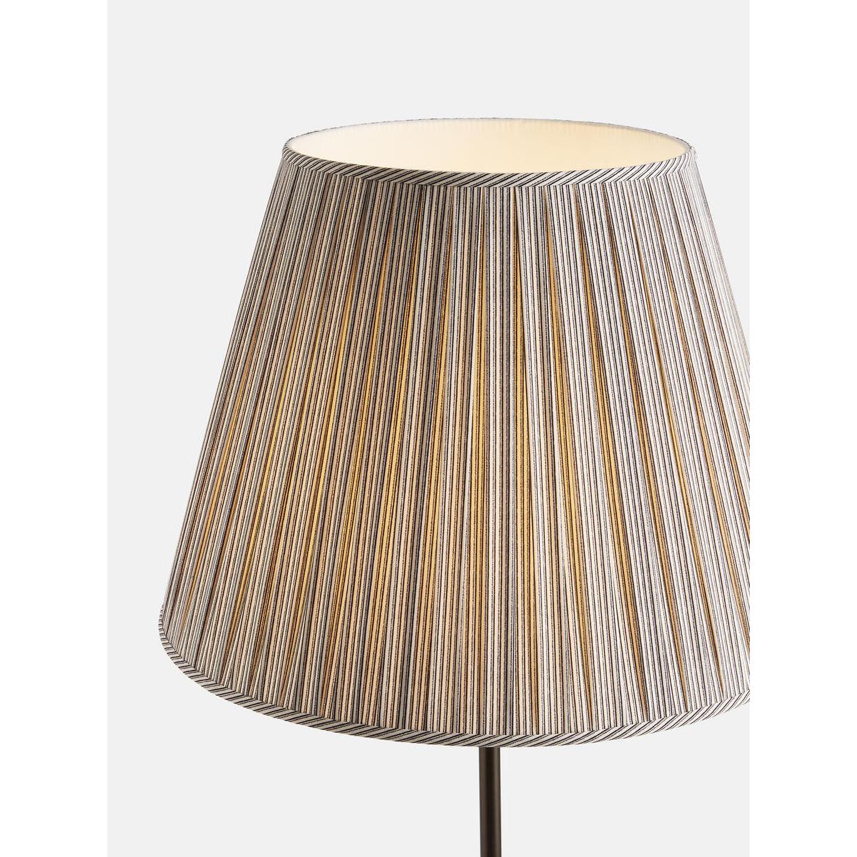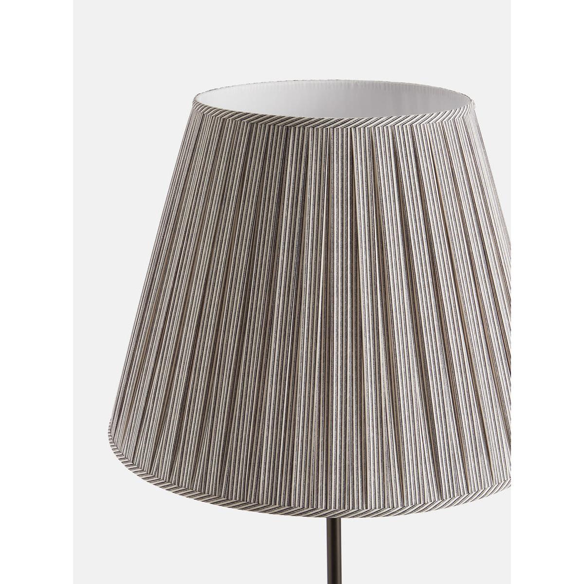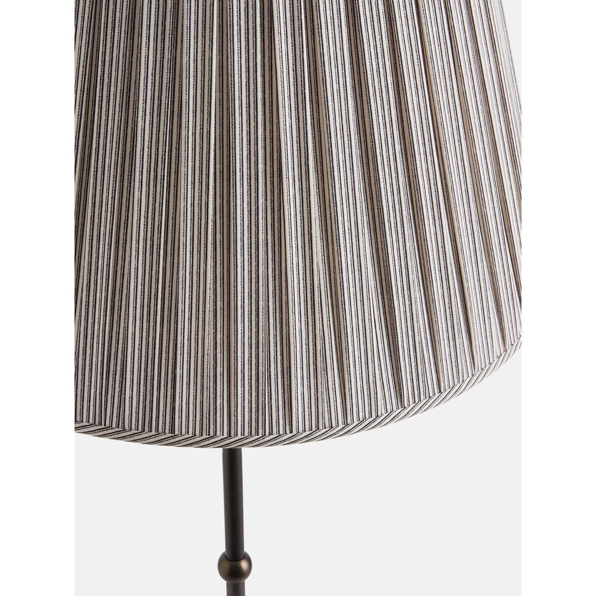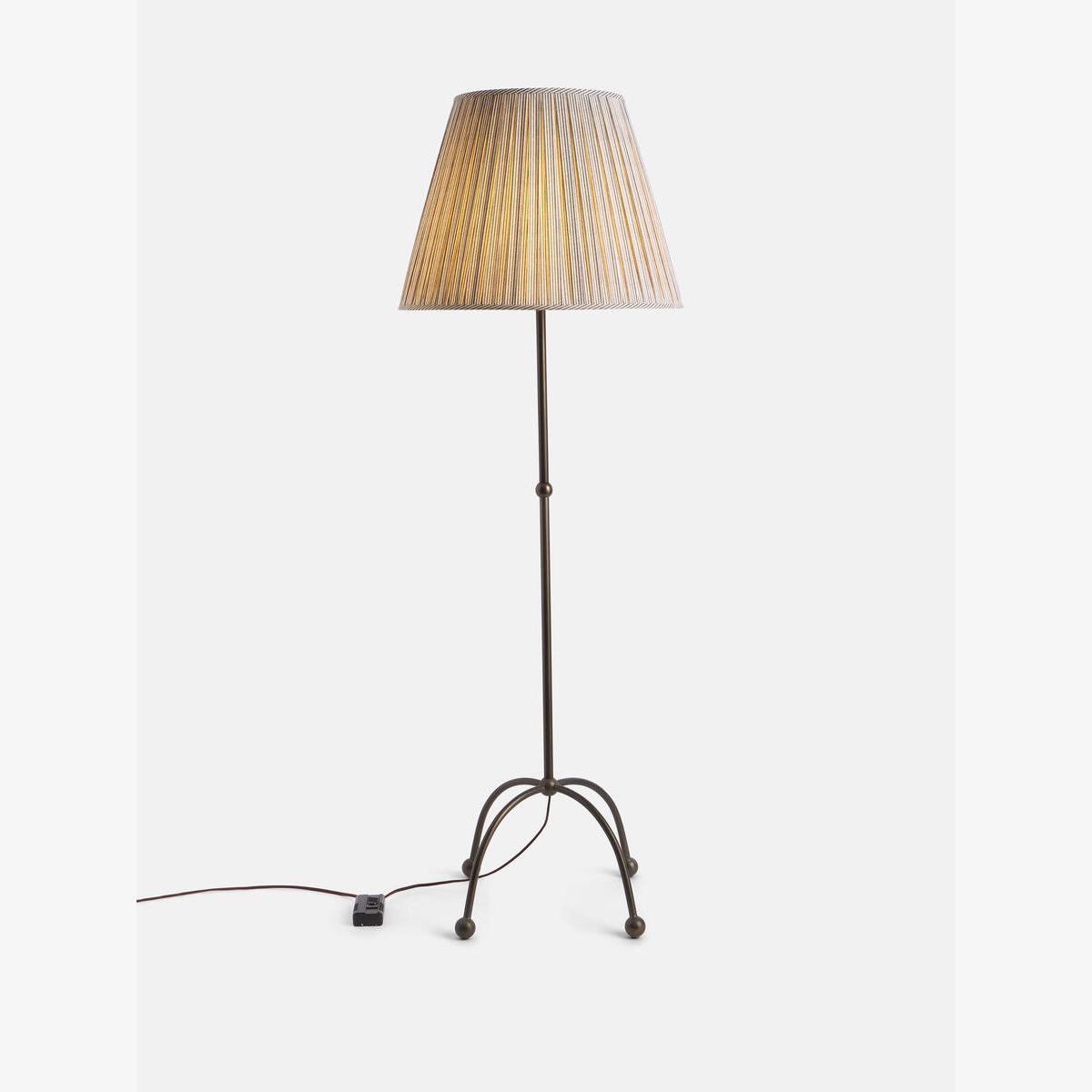 This classic floor lamp takes inspiration from the styles seen in the Main Barn at Soho Farmhouse. A raw blackened brass frame is brushed to give the lamp an antique feel, and is left without a protective coating. It therefore ages over time to develop a beautiful patina that adds character to new and old homes alike. Complemented with an organic, hand-pleated shade, it diffuses soft, ambient light and is decorated with intricate stripes to suit a variety of interiors. Four cast ball feet ensure enhanced stability and character. Lined, gathered and hand-pleated shade Subtle organic stripes Inspired by Soho Farmhouse