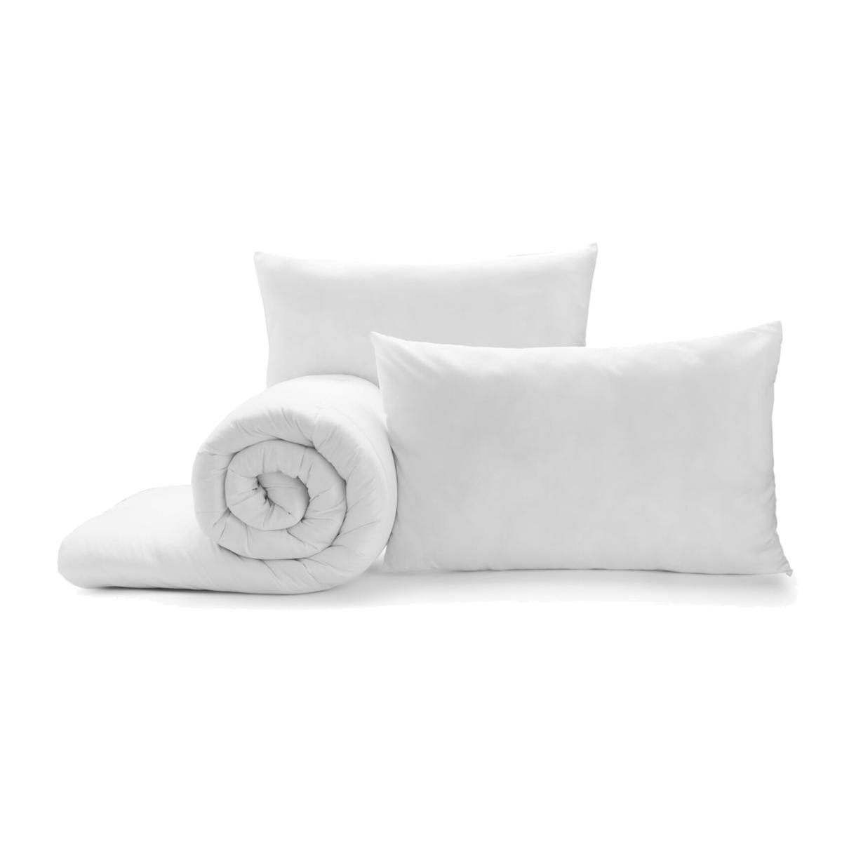 All year-round duvet and pillow sets provide a soft cosy sleeping space. 10.5 tog duvet for all seasons keeps you cool in summer and warm in winter. 1 quality duvet and 2 jumbo pillows included. Lightweight padded filling allows airflow through both the duvet & mattress keeping them fresh between sleeps. An ideal anti-allergy pillow set that resists dust, mites & bacteria with a super soft 75gsm polyester fabric kind to the skin. Premium 200gsm polyester hollowfibre filling makes sure the duvet is plush & luxurious for a good night's sleep as well as being robust and long-lasting. Large pillows with 400g filling provide a balance of neck support and padded comfort. Having a good duvet and pillow is what makes the difference between and good night's sleep and a great night's sleep. This comfortable duvet and pillow set aims to have you waking up fully refreshed & invigorated ready for the day ahead. Strong internal hem stitching. Polyester hollow fibre fill. 75sm polyester outer fabric. Machine washable at 30 degrees.