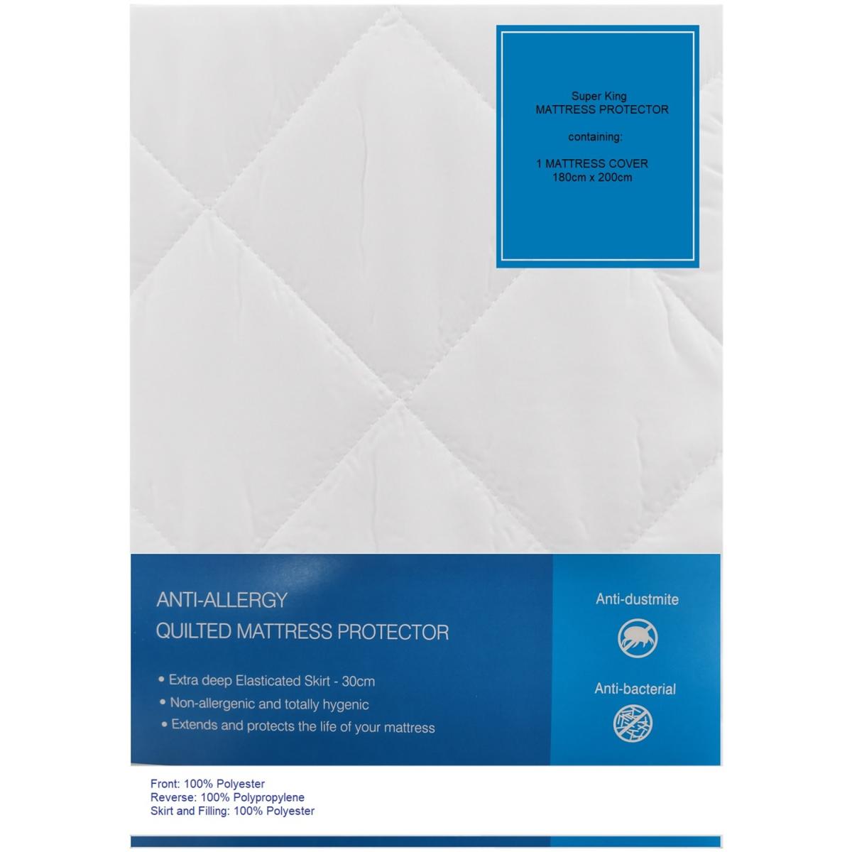 Gr8 Home Fine Linens Collection Extra Deep 30cm Anti Allergy Quilted Mattress Protector Fitted Bed Sheet Cover Topper Bedding. Your anti allergy quilted mattress protector is the best way to protect your mattress whilst improving comfort thereby prolonging the life of your mattress. Prevents allergens for a restful nights sleep. Fitting the protector is very easy. Simply stretch the protector over your mattress and the 30cm skirt depth ensures a perfect fit that looks great. Single: 90 x 190cm, Double: 135 x 190cm, King Size: 150 x 200cm, Super King: 180 x 200cm