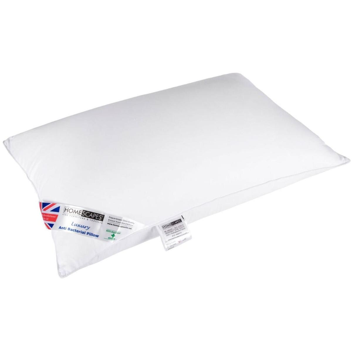 Stop bacteria in their tracks with the Anti-Bacterial Super Microfibre Pillow from Homescapes. This hypoallergenic pillow features a high-density microfibre casing that keeps dust mites out and stops bacteria from breeding, thanks to an anti-bacterial nano-capsule injection treatment technique. From the outer to the filling, every aspect of this pillow is designed specifically to keep your bedding fresh and hygienic it is filled with hypoallergenic, anti-dust mite Super Microfibre to give you a cloud-like, healthy space to rest your head. Perfect for front and back sleepers, this plump pillow will also support your head, neck and shoulders to keep your spine in optimum alignment. Machine washable at 40 C. Tumble dry on low heat. Ensure that the pillow is completely dry before use.