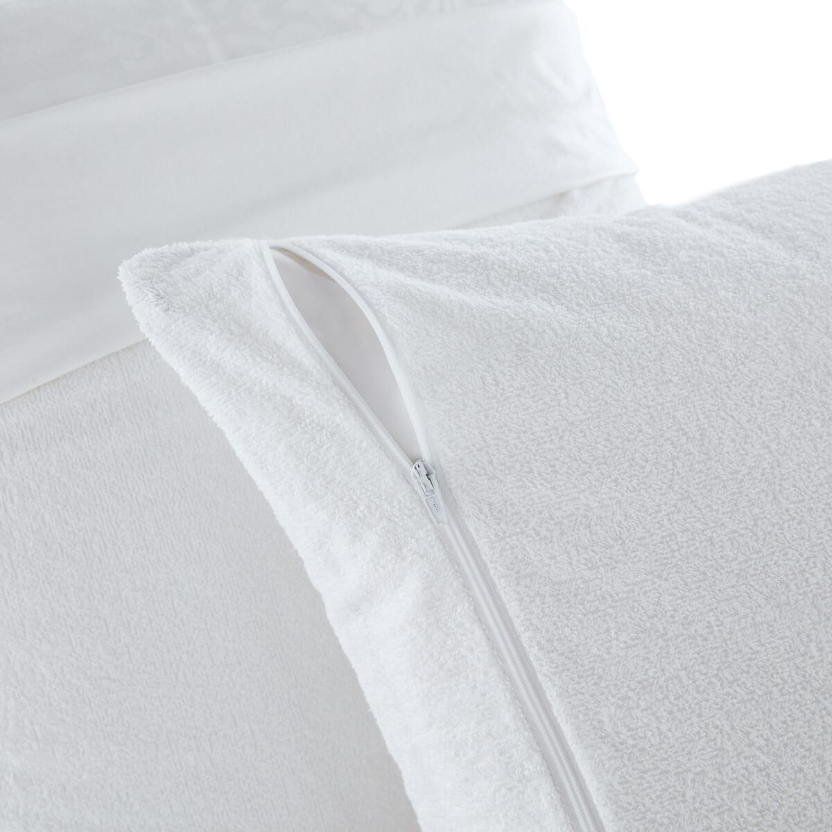 This terry towelling protector protects your pillow from mould, bacteria and dust mites. Bedding protection from La Redoute Interiors, expert bedding designer. Product Details • 80% cotton terry, 20% polyester (100% cotton on sleeper side), polyurethane bonded waterproof (145g/m²) • Full-width zip closure • Bi-ome® anti-mite, antibacterial and anti-mould treatment: treatment safe for the environment and humans, which maintains its effectiveness after numerous washes. • Bi-ome ® biocidal anti-mite treatment. The active substance is Dimethyloctadecyl[3- (trimethoxysilyl) propyl] ammonium chloride. Quality Info • La Redoute Interiors bedding protection allows you to extend the life of your mattresses and pillows..Care instructions • Machine washable at 60°C. • Can be tumble dried at moderate temperature. Sizes • 40 x 60cm: Rectangular • 50 x 70cm: Rectangular • 60 x 60cm: Square • Made in Europe. • OEKO-TEX® Standard 100. Standard 100 certification by OEKO-TEX® tests textile products for harmful substances via an independent, international label.