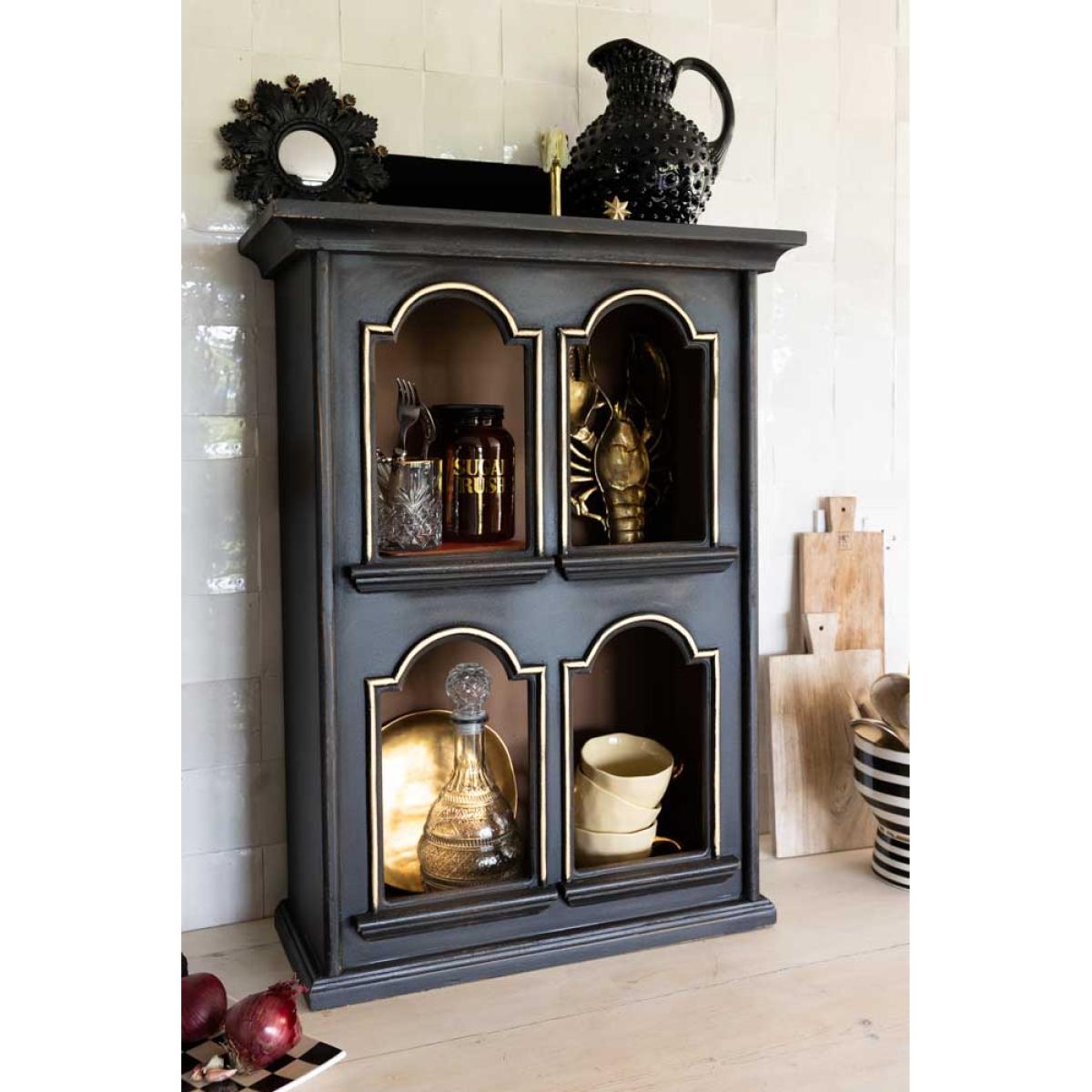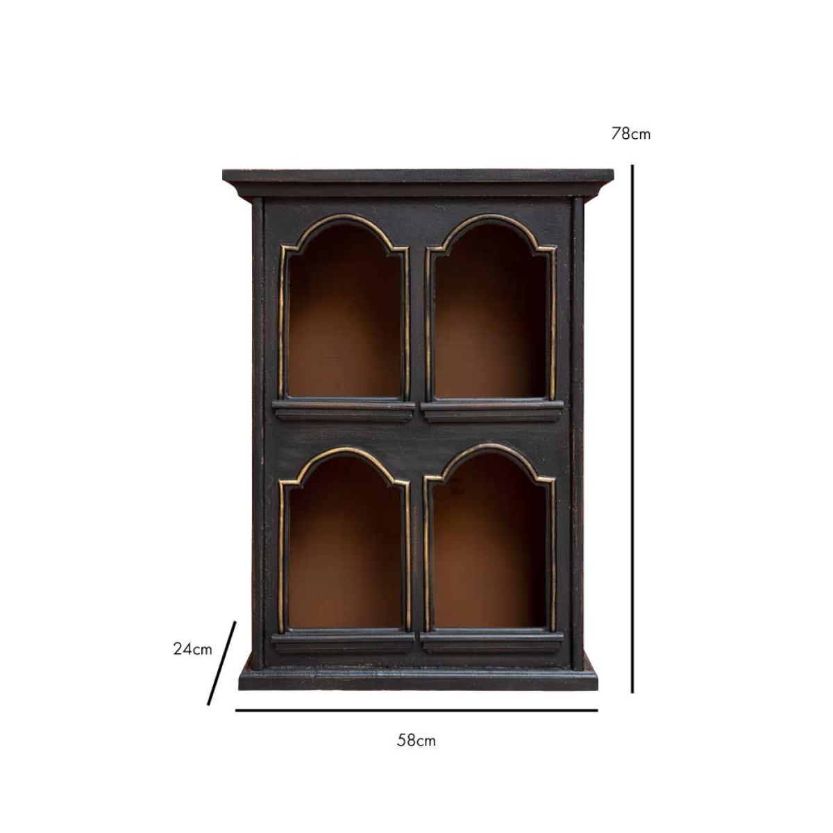 Unlike anything we have seen before, the Antique Black & Gold Dovecote Wall Cabinet is a unique storage solution for showing off everyday treasures collected over the years. Inspired by classic wooden dovecotes, the display wall cabinet features four ornate pigeonhole windows to flex your interior styling prowess. A gorgeous bathroom cabinet or kitchen wall unit, there are so many beautiful ways to introduce this wall shelf unit to your home. Perfect for adding extra height and interest to your kitchen countertop in place of traditional kitchen wall cabinets, the dovecote wall unit looks fab filled with tea, coffee, cutlery and your best guest mugs. As a top tip from our in-house styling team, we recommend adding a couple of cookbooks to the top shelf so that your treasures sit flush with the opening of the windows. Alternatively, why not style the dovecote wall cabinet in the bathroom with skincare and beauty essentials on each shelf to create a home display that rivals the walls of the best luxury beauty stores!? Wooden wall shelf unit with an antique black and gold finish Made from pine Measures: H78 x D24 x W58cm Shelves sit approximately an inch lower than the window opening Please note that this is a wall mounted cabinet but appropriate fixings will need to be sourced separately