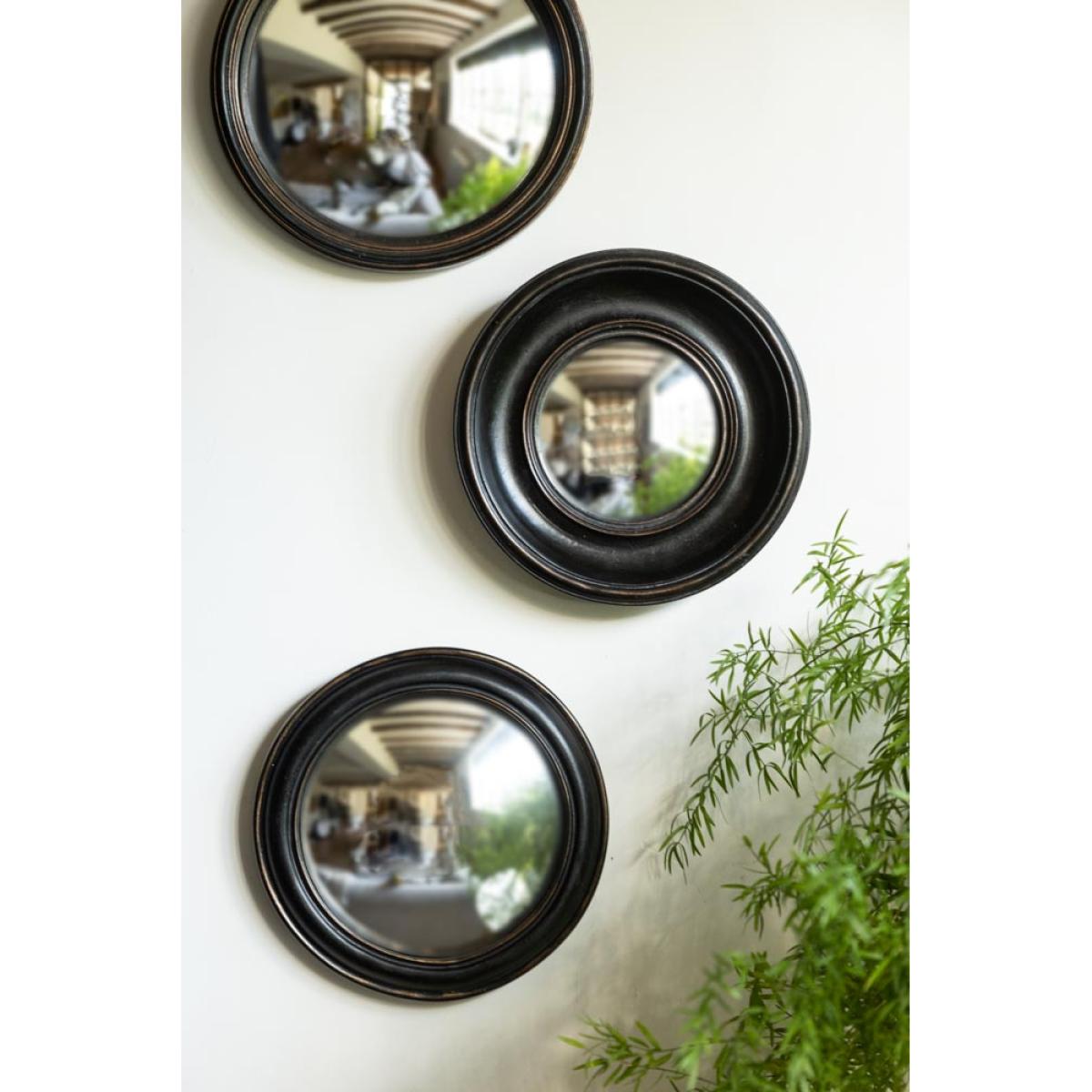 About The Antique Black Round Framed Medium Convex Mirror The Antique Black Round Framed Medium Convex Mirror is equal parts mirror and wall art. Simple and chic, the mirror features a distressed black frame, with a convex mirror inside. Measuring H19cm x W19cm x D3cm, the black round mirror is part of a collection of fabulous convex mirrors that can be styled creatively around your home. Why We Think You’ll Love The Black Wall Mirror Decorative wall mirrors are a great alternative to traditional wall art and create the same effect whilst also introducing a feeling of additional light and space to your interior. Designed with a classic black frame and quirky convex mirror inside, this round wall mirror is incredibly easy to style and is small enough to display on any wall or alcove. To create a statement mirror wall art feature, mix and match convex mirrors in different shapes and sizes on the walls of your home.