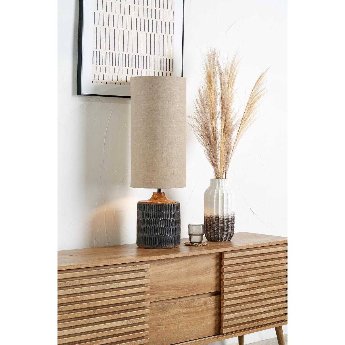I love this lamp for its versatile vintage vibe and warm, earthy tones. It works particularly well in both modern scandi and rustic interiors, adding a cosy touch without overpowering the space. To style it effectively, consider placing it on a sideboard or console table alongside natural textures like woven baskets or greenery to accentuate its organic feel. Its neutral colour palette ensures it complements various colour schemes, making it a practical choice for defining cosy reading nooks or enhancing living room ambiences with soft, warm lighting.