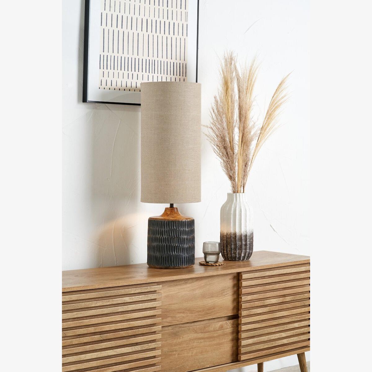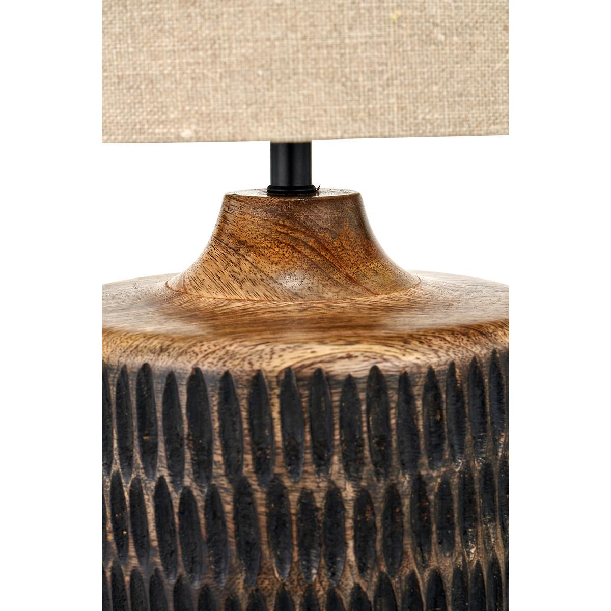 This distinctive antique black wash, mango wood table lamp adds texture with its use of natural wood grain, natural linen and carving pattern. The striking elegant tall lampshade in a neutral pallette complements the natural base material and adds a cosy soft lighting ambience. Handmade in India, this table lamp complements any Scandi-inspired space. Product Dimensions: 26 x 26 x 78cm. Composition- Mango Wood. This product will be dispatched by one of our trusted suppliers. You’ll be contacted by their selected courier about your delivery.