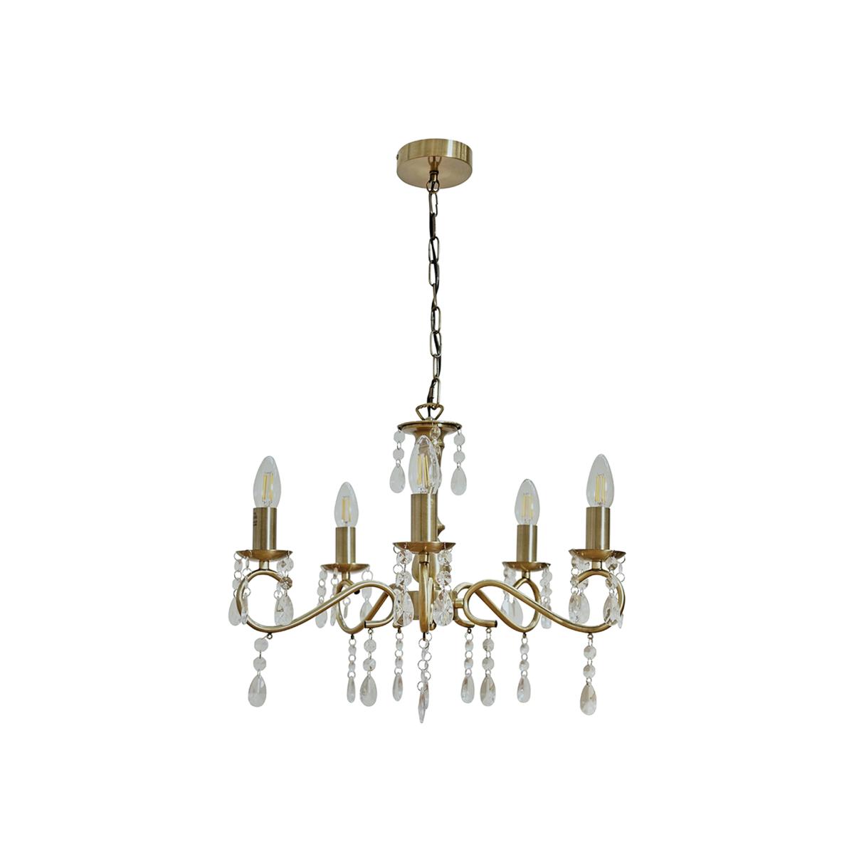 Antique Brass 5 Way Crystal Jewel Chandelier Ceiling Light Fitting - Brass