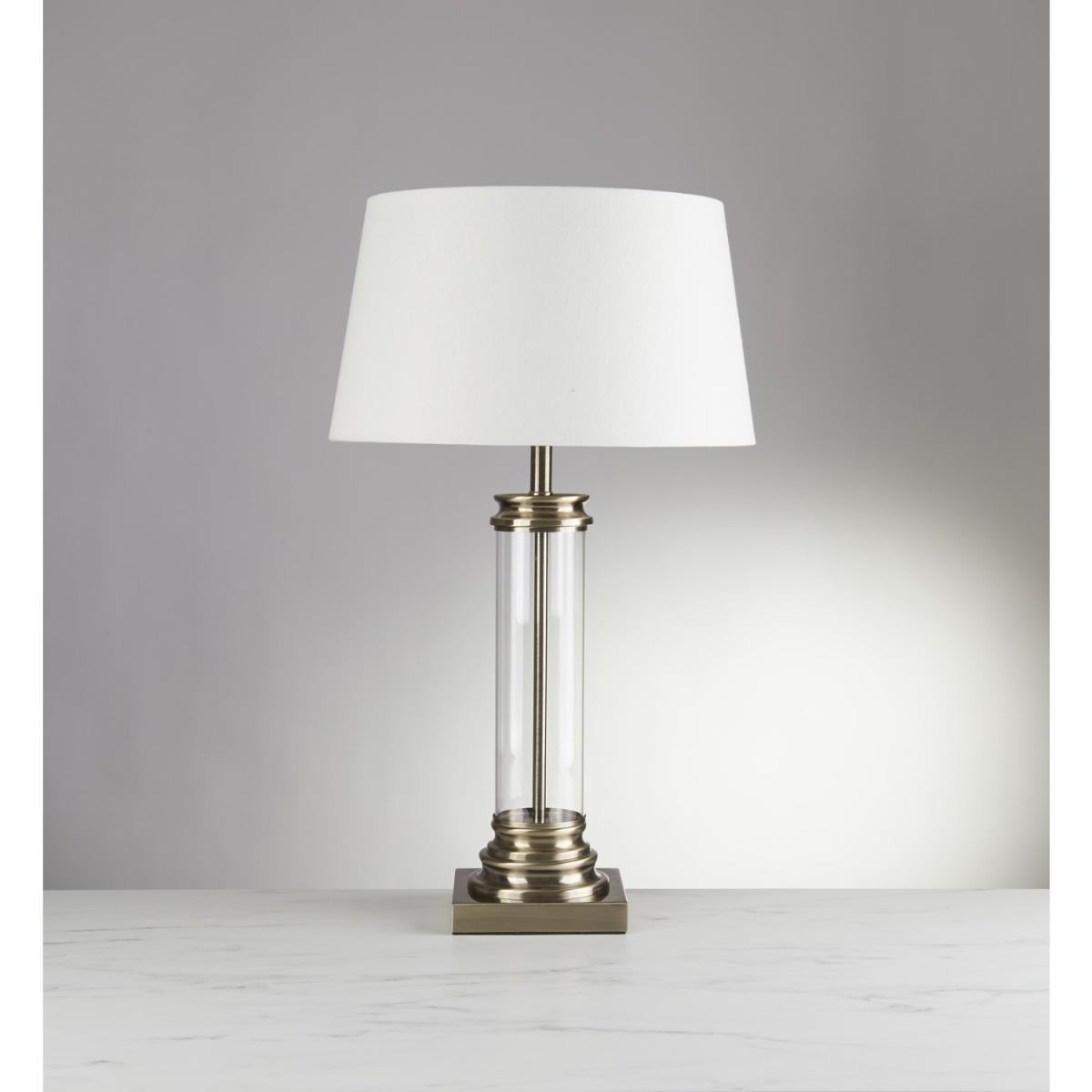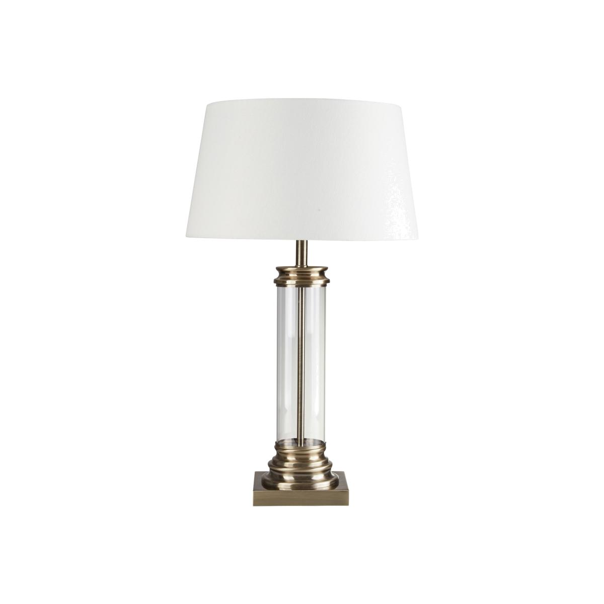 This antique brass vintage inspired table lamp is the perfect addition for a traditional living room or bedroom. The combination of the cream shade, glass column and antique brass base creates a real feeling of sophistication.