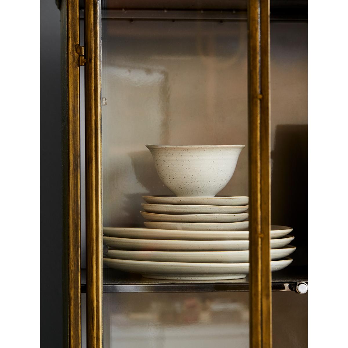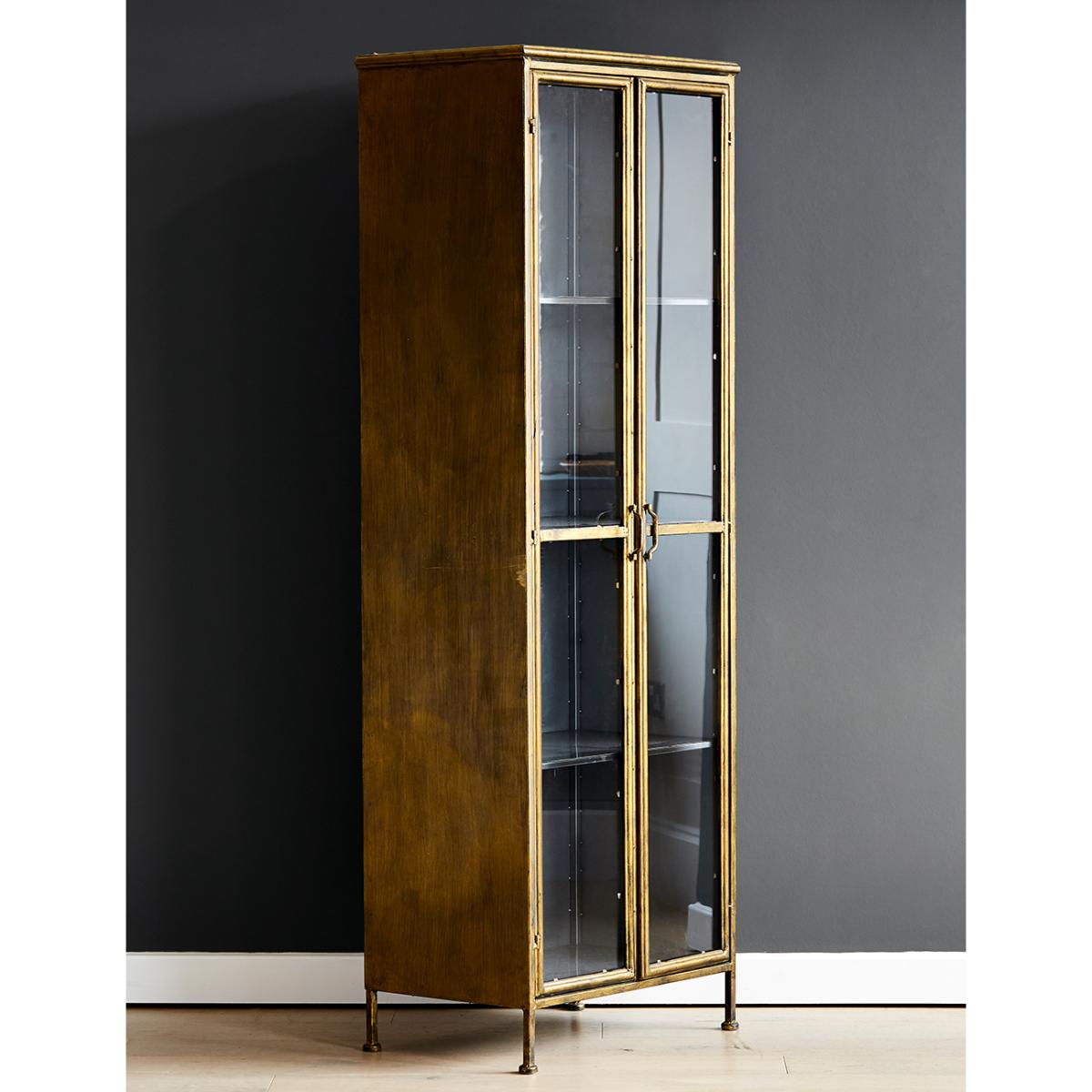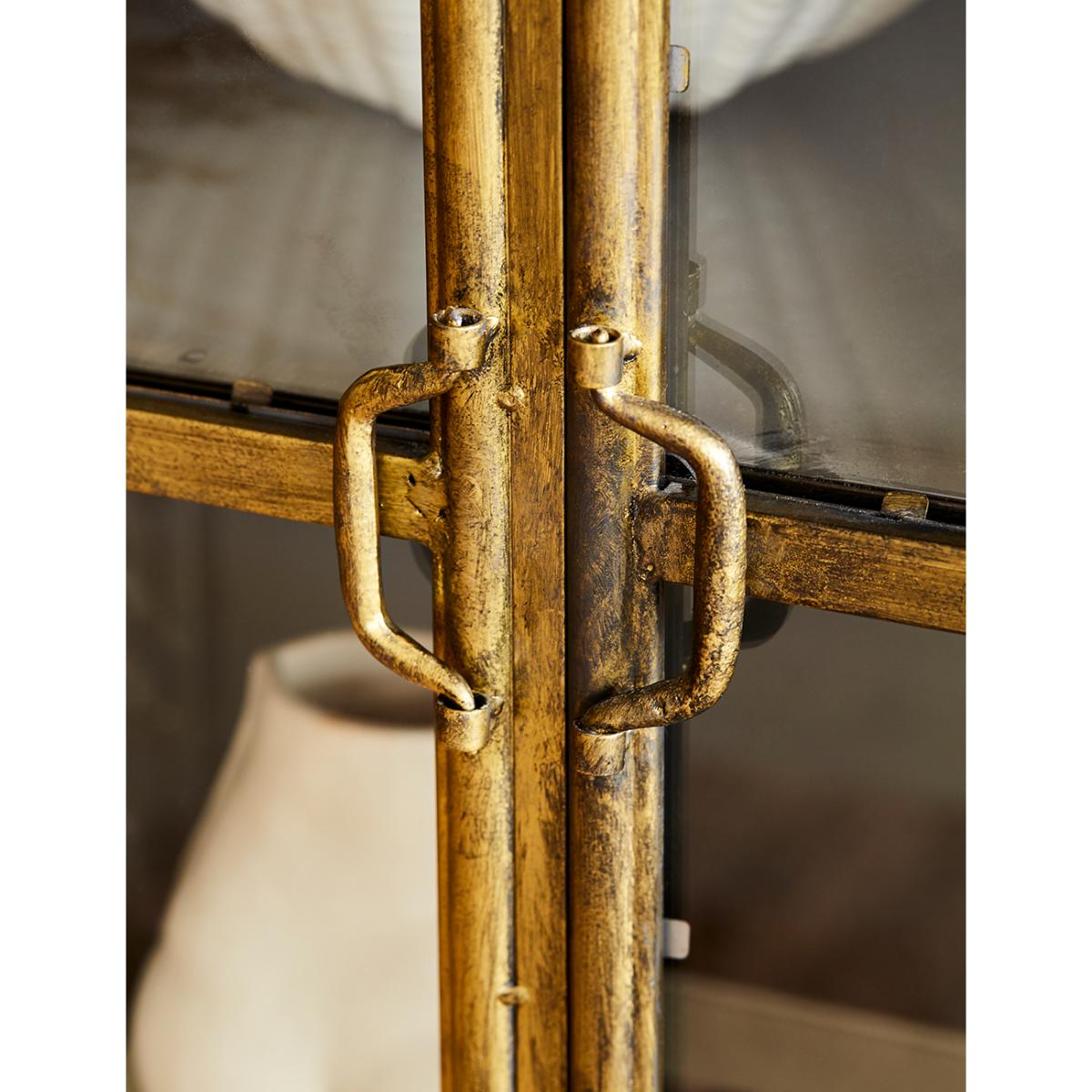 This beautifully crafted antique brass and glass display cabinet is perfect for showing off your favourite glassware or a curated collection of vases and books in a reception room. We love the vintage appeal of this cabinet, helping to create a timeless piece of furniture. The front and sides of the cabinet have a distressed, painted antique brass finish while the back is unfinished as the cabinet is designed to be placed against a wall.