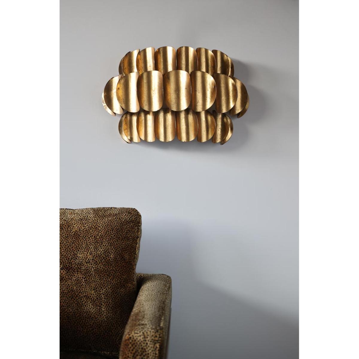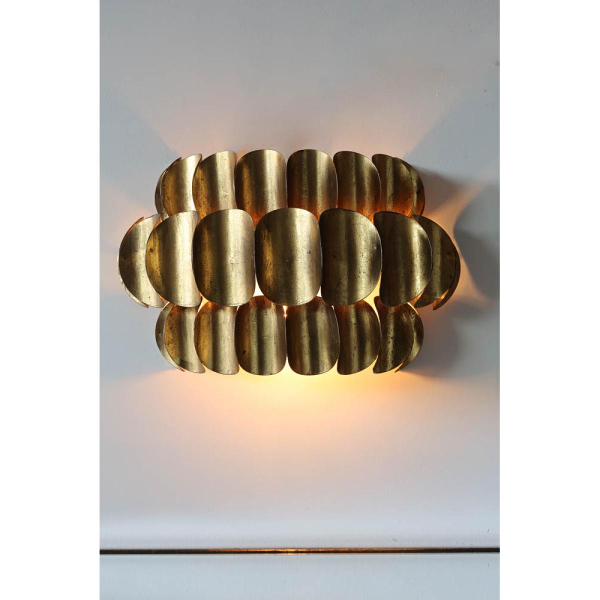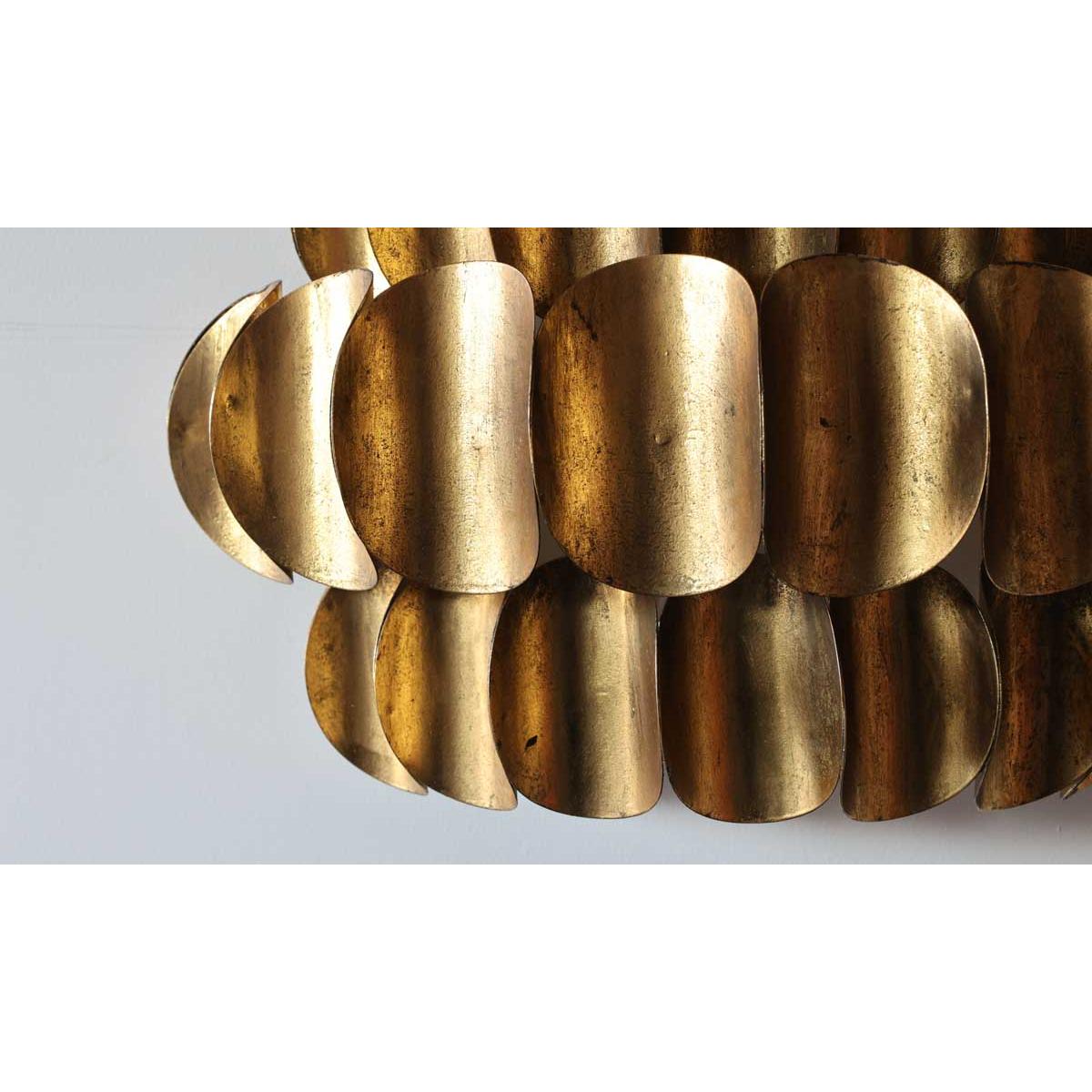 About The Antique Brass Curve Disc Wall Light Bold and beautiful, the Antique Brass Curve Disc Wall Light is statement lighting at its best! Designed with an antique brass finish on the iron base, the design reveals three rows of curved metal discs joined together to create a fabulous wall feature. Measuring H28cm x W45cm x D19cm, this light requires a B22 max 40-WATT IP20 bulb. Why We Think You’ll Love The Distressed Gold Curved Wall Light One of Jane & Lucy’s top tips for any space is to think about accent lighting. While overhead ceiling lights are great, it is wall lights and table lamps that are the key to creating a warm and inviting atmosphere in your living spaces. Pairing a bold curved design with a distressed brass finish, the curve disc indoor wall light is a wonderful example of the power of accent lighting and will even rival the chandelier as the hero lighting design in your home! How To Style The Antique Brass Indoor Wall Light The Antique Brass Curve Disc Wall Light promises instant impact wherever you choose to install it in your home. One of our favourite spots for the design is in the bedroom to create an oversized bedroom wall light with all the glamour of a boutique hotel. Alternatively, you could style a pair of the antique gold wall light on either side of the sofa for cosy mood lighting that celebrates the joy of staying in.