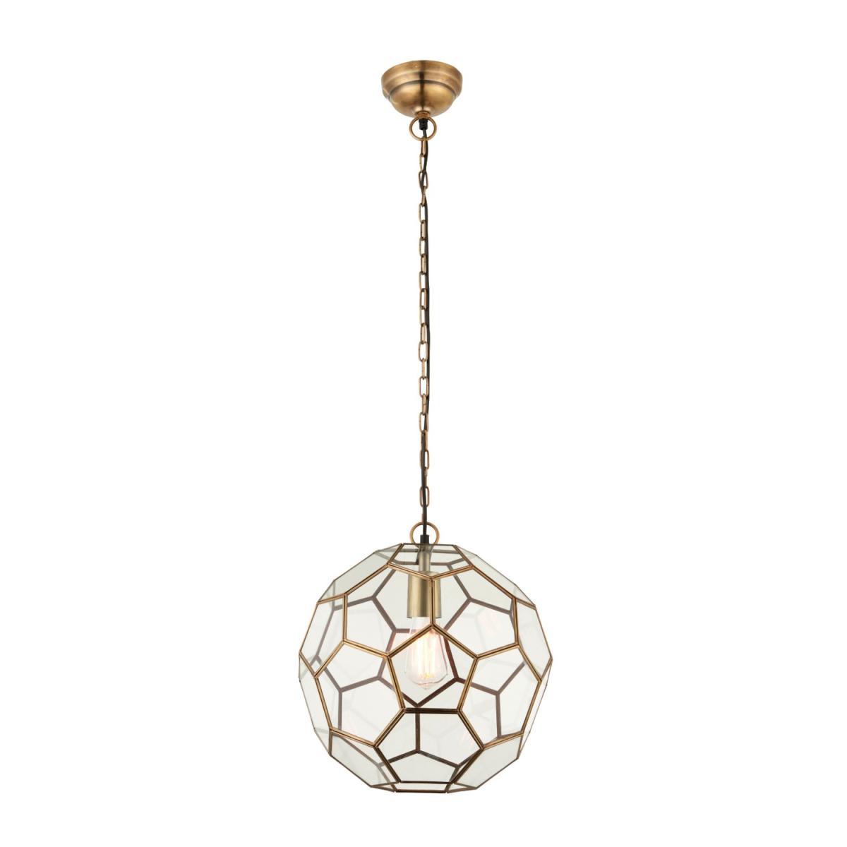 The Miele 1-light pendant is a combination of hexagonal glass panels surrounded by antique brass edging. A stunning light design will be cast on surrounding walls and ceilings when lit.