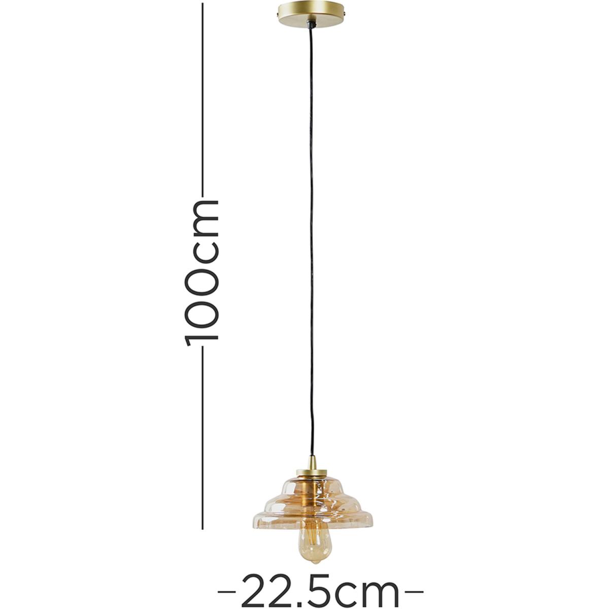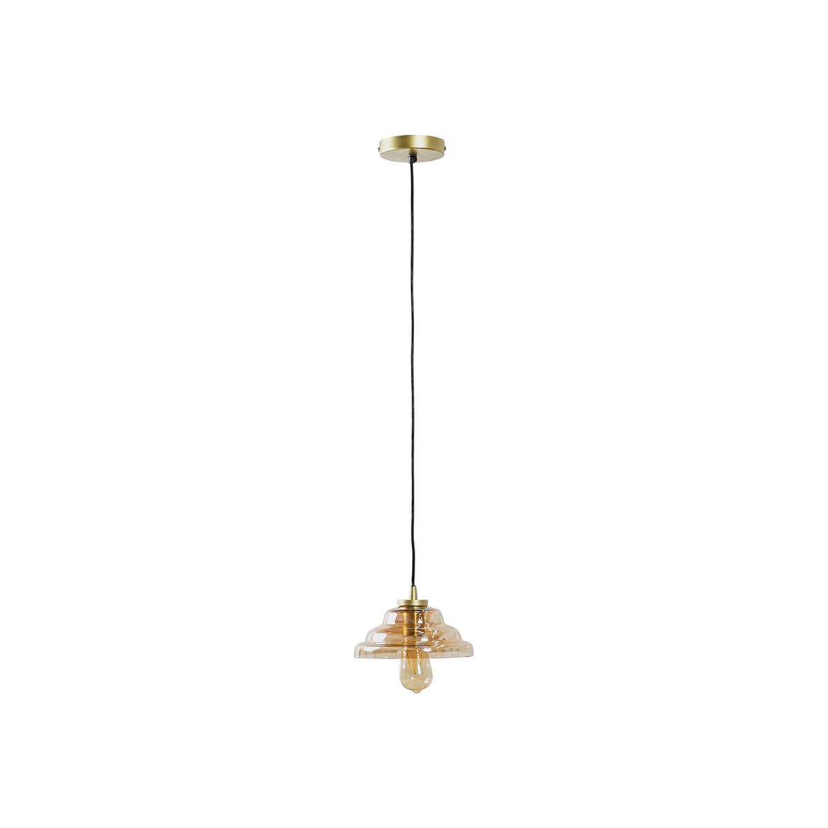 Antique Brass Pendant Ceiling Light with Rippled Amber Glass Shade - Gold