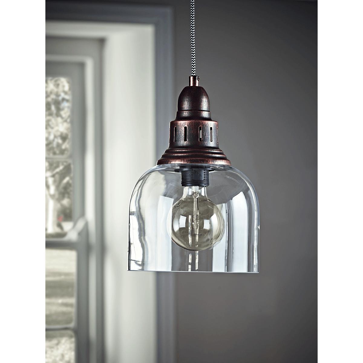 Inspired by our bestselling. Zinc and Glass Pendant. , this popular shape is now available with an antiqued copper top. The copper detailing will add warmth to an industrial inspired interior, while the domed glass shade will illuminate your space.