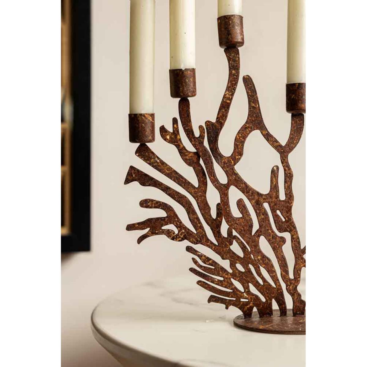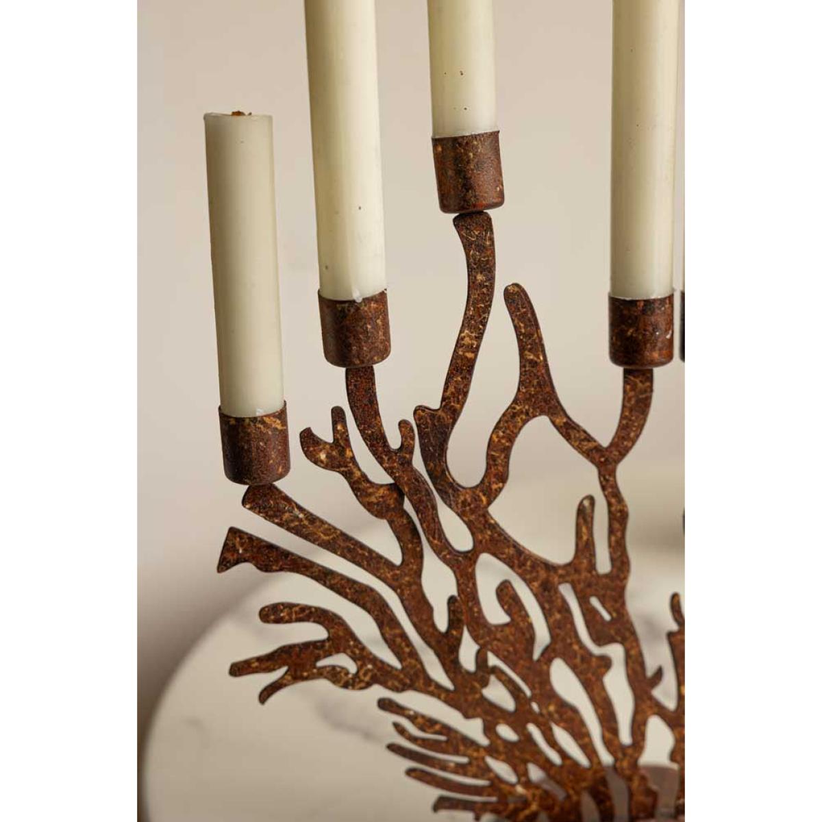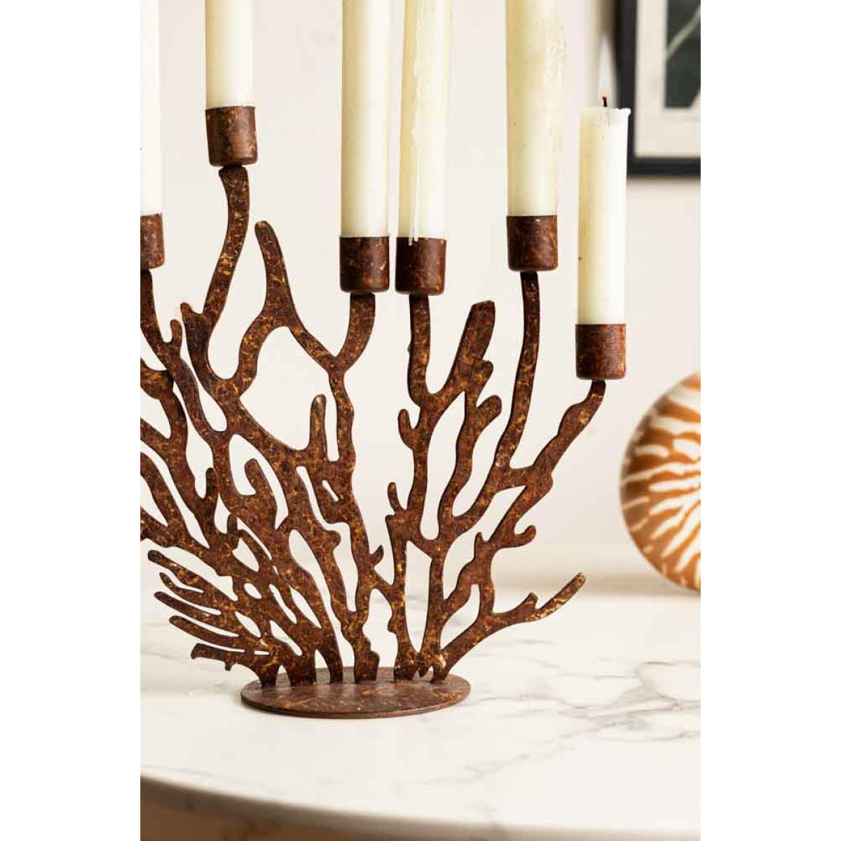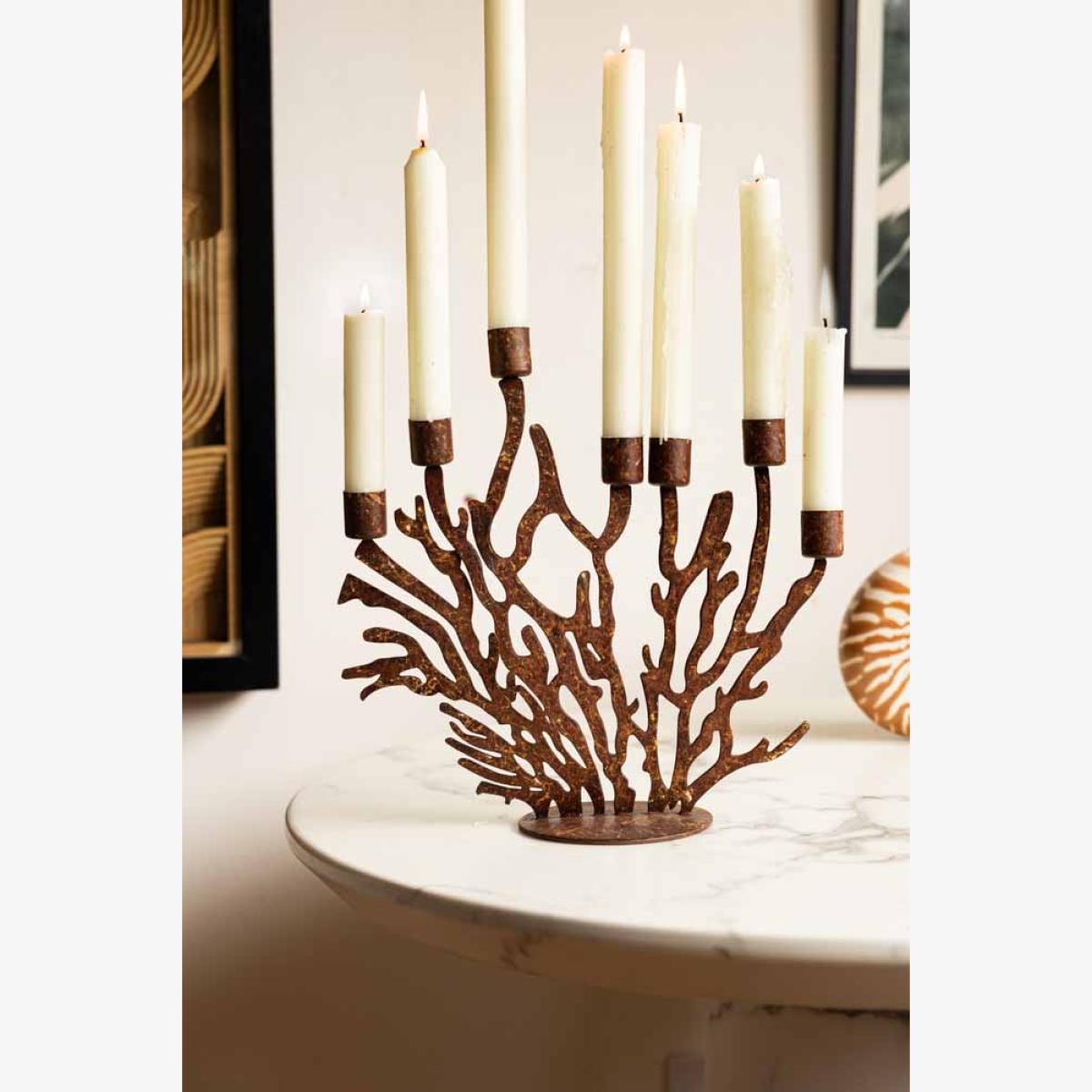 Light up your life (or at the very least, your dining room table) with this fabulously quirky candelabra. Designed to replicate the ruched textures natural coral, this piece holds up to seven candles, illuminating your space beautifully as well as creating a talking point that’s sure to get the party started! The attention to detail is admirable, too, with fronds and frills painstakingly crafted and picked out, and the rust-coloured hue reminiscent of the real thing. Bring a little of the deep end of the ocean into your heart and home, and enjoy this forever piece as part of every special mealtime. - Antique Coral 7 Candle Candelabra - Material: Iron - Measures: H28cm x W29cm x D11cm
