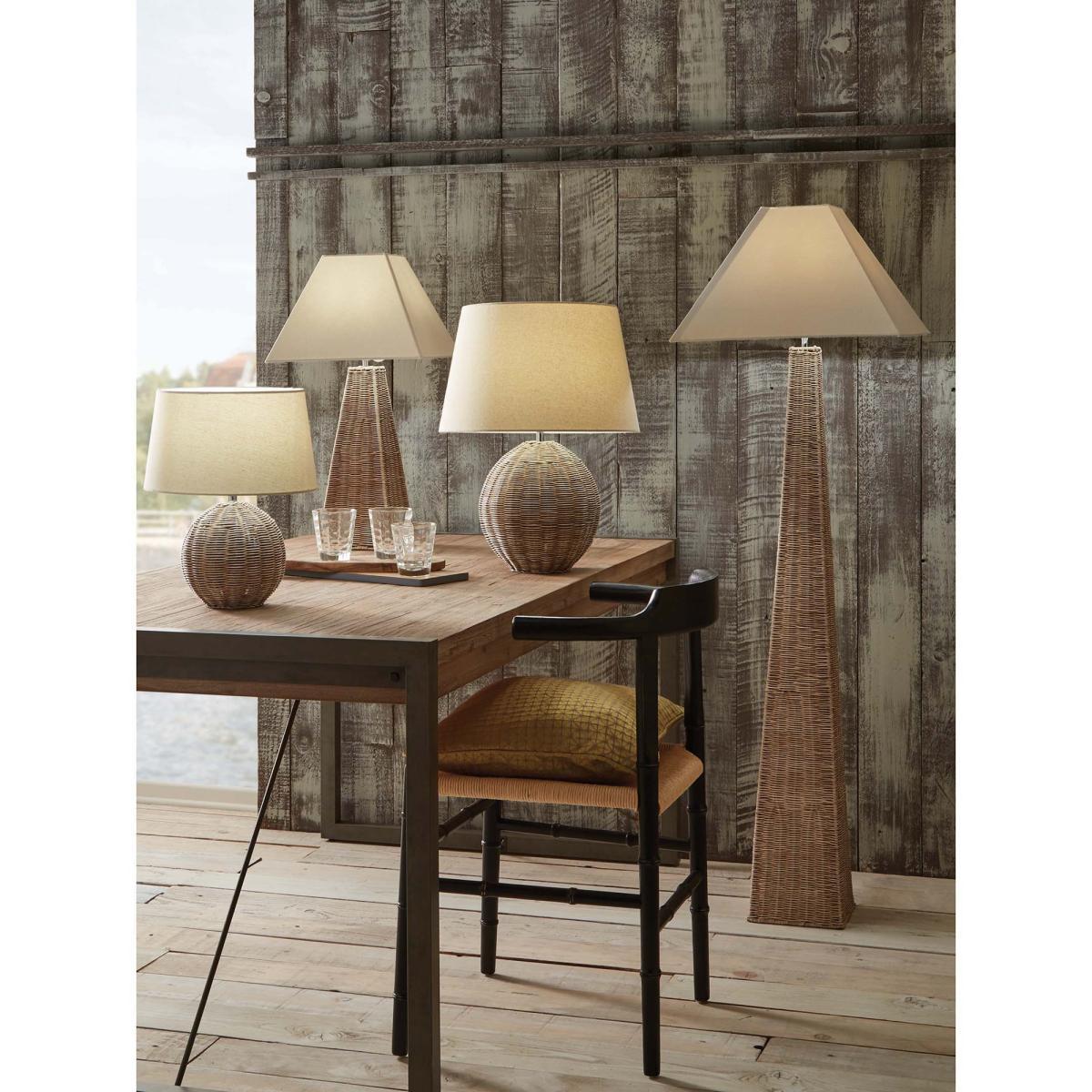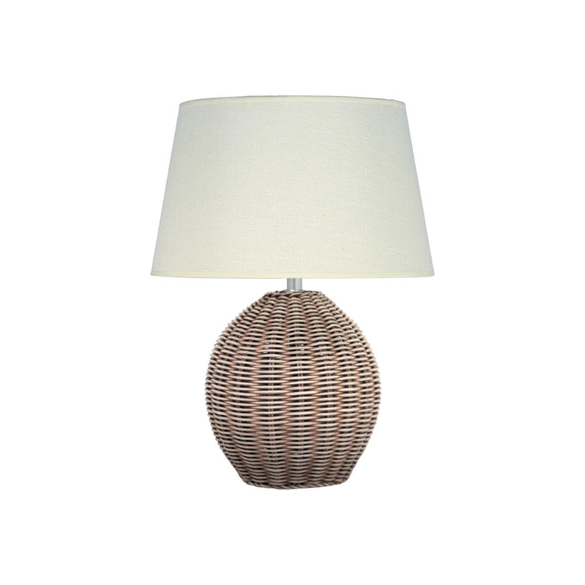 This table lamp base is made from a beautiful antique cream wash rattan wove into a spherical shape. Bring the beach hut feel to your home with this relaxed lamp, complete with its own cream slubby cotton shade. Also available in a larger size as a base only. Table Lamp Diameter: 30.5cm. Table Lamp Height: 38cm. Please note Bulb is not included. Bulb Required: E27, Maximum 60W.. This product will be dispatched by one of our trusted suppliers. You’ll be contacted by their selected courier about your delivery.