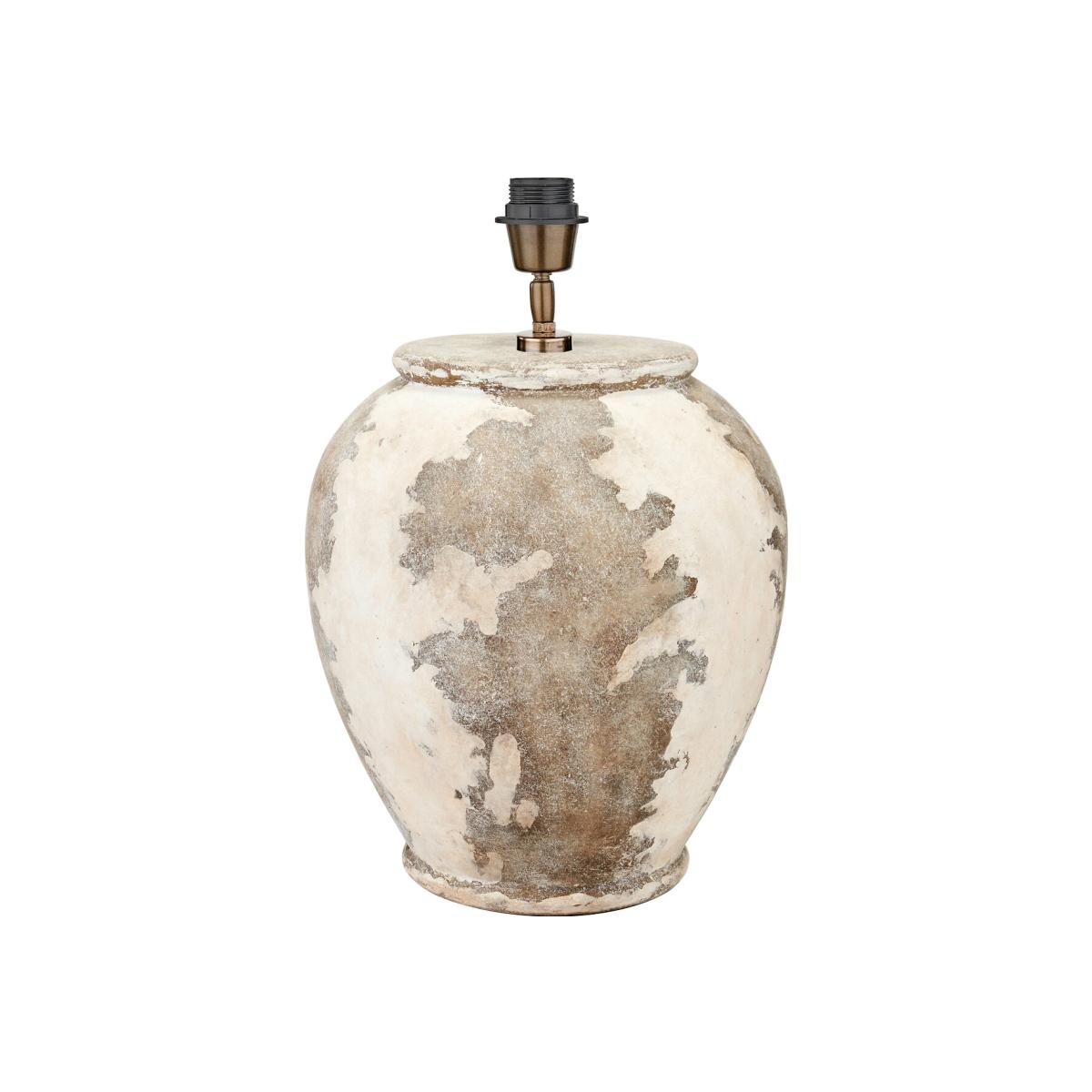 Individually handcrafted in the Philippines, our tall, urn shaped stoneware table lamp base, boasts an antique finish that adds depth to any room. Each piece features an abstract vintage design, making it one of a kind. With its neutral cream and grey tones, this lamp seamlessly fits into any interior, making it a versatile and stylish addition to your home. Recommended lampshade size is 35cm diameter. Product Dimensions: 30 x 30 x 43cm. Composition- Stoneware. This product will be dispatched by one of our trusted suppliers. You’ll be contacted by their selected courier about your delivery.