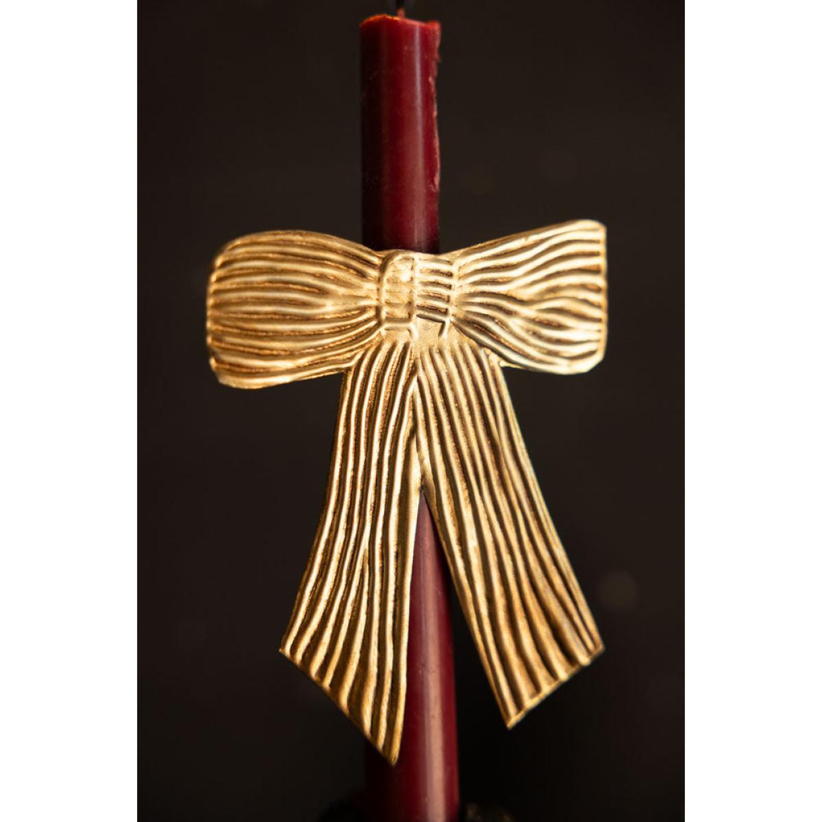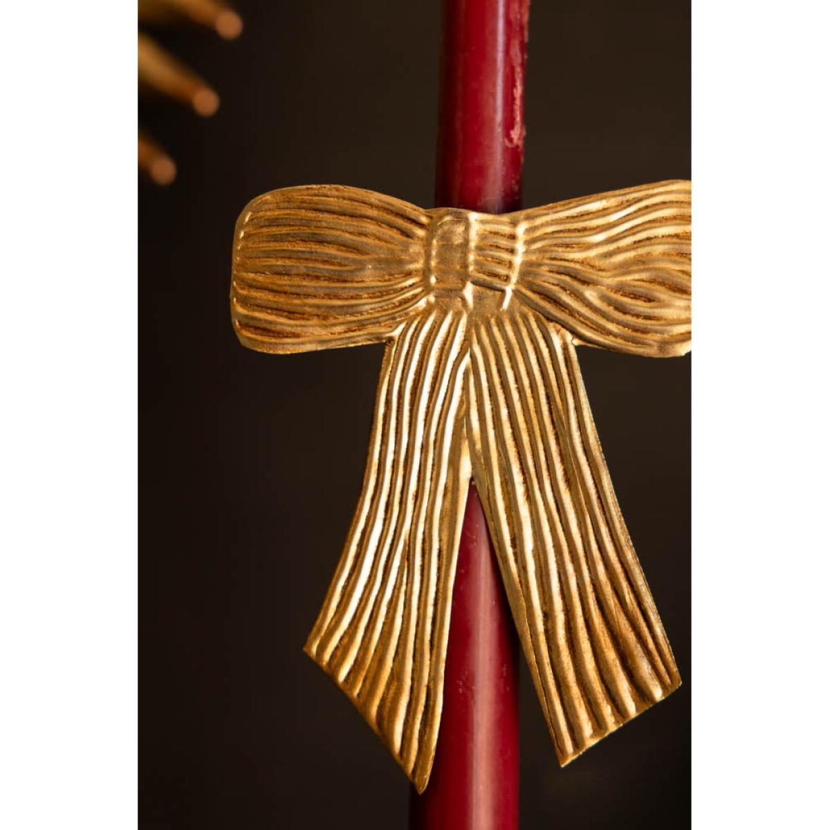 Well, isn’t this the most beautiful candle pin you’ve ever seen? Meet the Antique Gold Bow Candle Ring – the easiest, prettiest way to fancy up your candles and home accessories in seconds. It’s a gorgeous rustic antique bow that you can literally slot straight onto your dinner candle. Yes, you read that right…it's an accessory for your candles. Because why should your Christmas tree have all the fun? Whether you’re dressing up your tableware, adding a little extra magic to your shelves, or just feel like your favourite candle deserves a glow-up, this beauty is all over it. Style it solo or mix and match it with other candle pins to create your own waxwork masterpiece. Either way, your candles just got a whole lot fancier. - Antique Gold Bow Dinner Candle Ring - Measures: W9cm x H10.3cm - Materials: Metal - May have sharp edges, handle with care - Wipe clean
