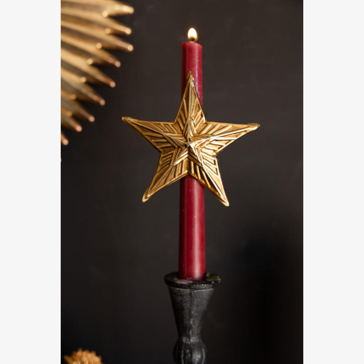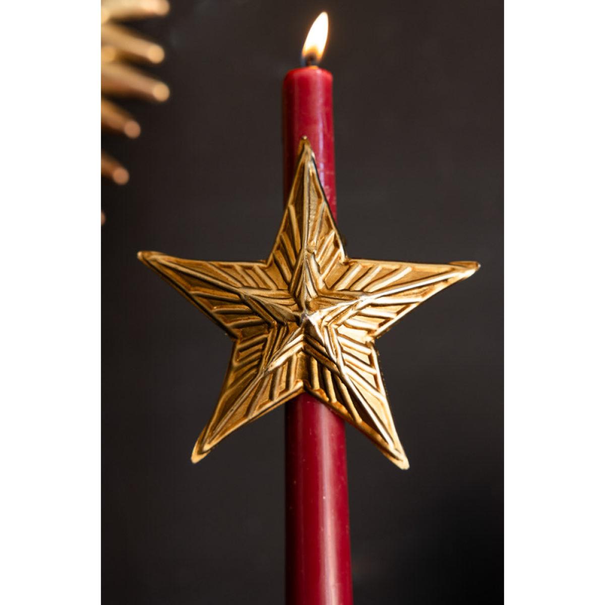 Add a little festive fairy dust to your homeware accessories with this unique decoration idea. If you're looking to jazz up your pillar candles with a festive twist, the Antique Gold Star Candle Ring may be just the ticket. This little beauty is like jewellery for your Christmas candles – simply slide the star ring onto any waxy dinner candle wonder and voila! Instant holiday sparkle. With its vintage-inspired gold finish and textured starburst design, it’s giving major North Star vibes. Whether you’re setting the mood for a cosy night in or going full-blown Winter Wonderland, this charming Christmas star brings all the festive feels with zero fuss. Perfect for adding that extra twinkle to your Christmas table, mantelpiece, or anywhere you need your candles to shine brightly. - Antique Gold Star Dinner Candle Ring- Measures: W10cm x H10cm- Materials: Metal - May have sharp edges, handle with care - Wipe clean only