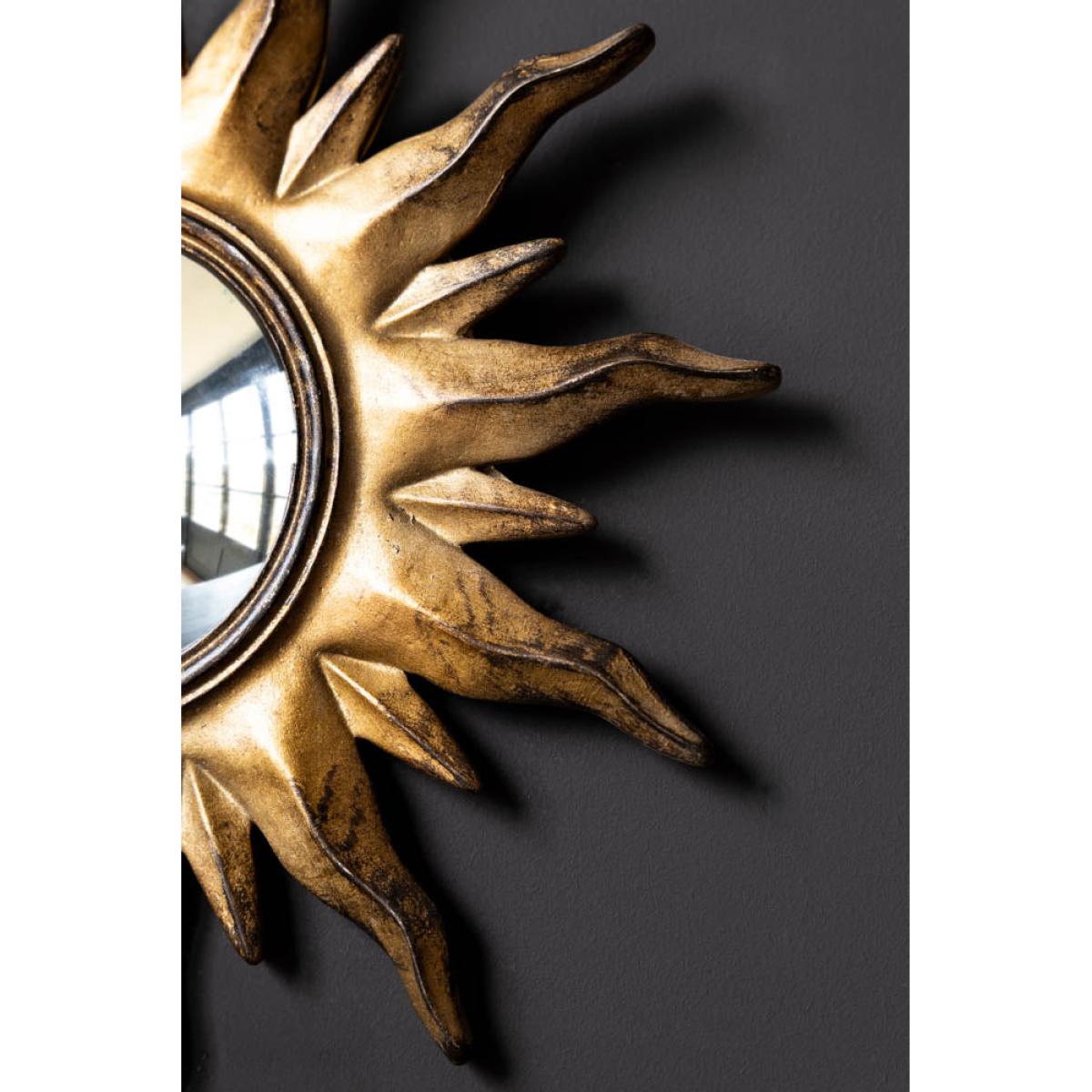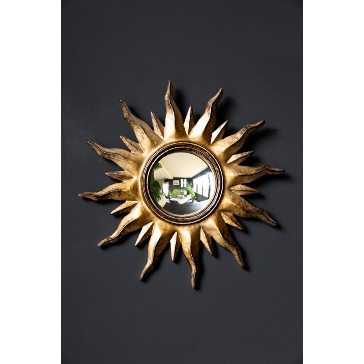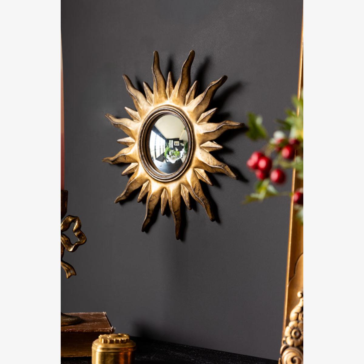 Bring a little sunshine to your wall art inspiration with our antique gold sun decorative mirror. With its radiant sunburst design and beautifully aged gold finish, this small mirror has that perfect flea market vibe. The convex centre doesn’t just reflect light, it adds depth and a touch of drama, making it a true statement piece. Hang it above a mantel, in a hallway, or use it as a mirror for a gallery wall – wherever it goes, it’s guaranteed to turn heads. We love it because it’s bold yet timeless, giving your space that antique charm while still feeling fresh and fun. - Antique Gold Sun Convex Mirror - Measures: D31cm - Materials: Resin