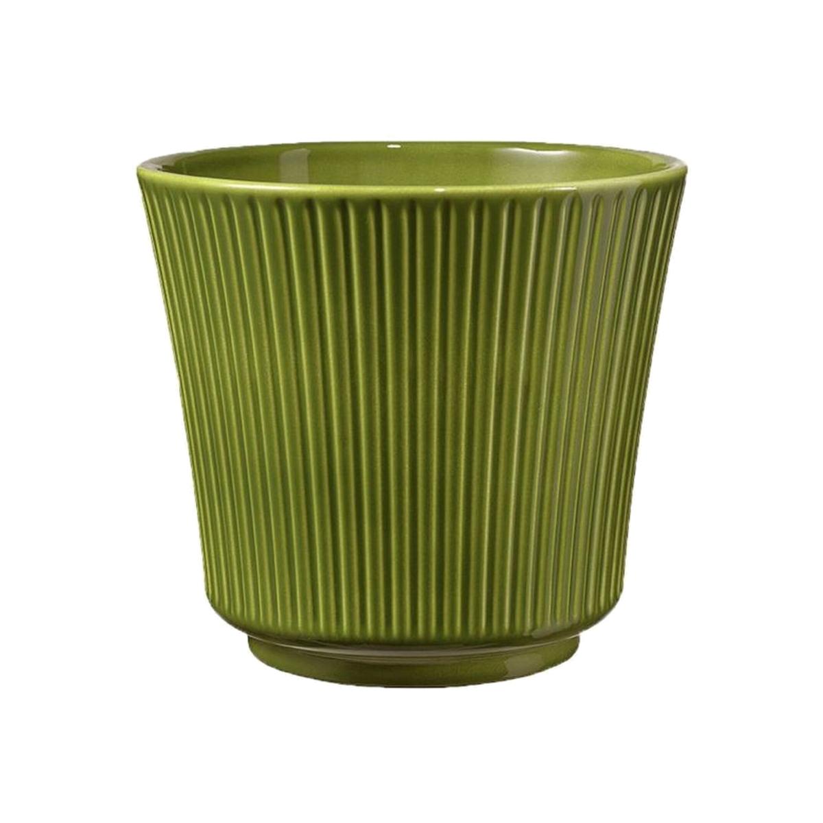 This pot comes in am antique green shade with a ribbed embossed design. Display anywhere in the home with your favourite plants or flowers. There are no drainage holes. Height 15 cm, width 17 cm