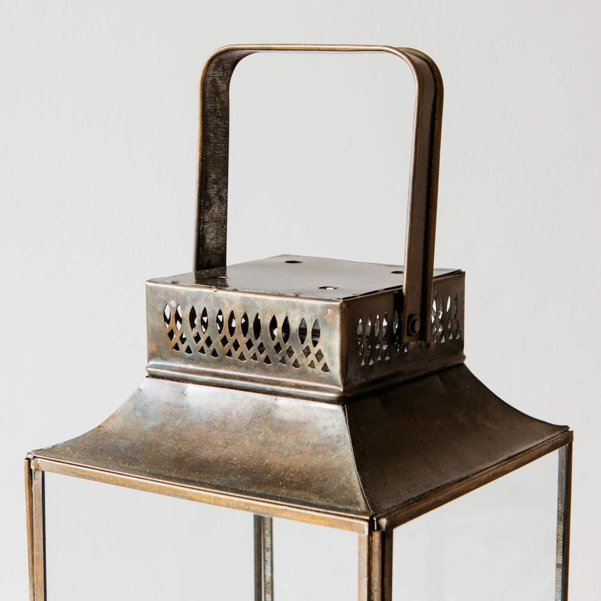 Ignite old world romance in your home with this antique inspired lantern made of glass and iron.
