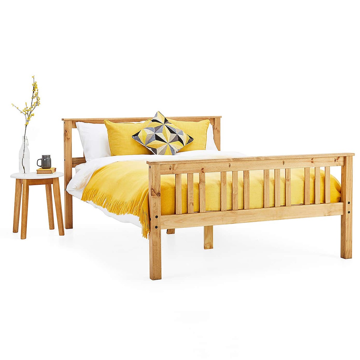 I love this bed frame for its clean, classic lines and natural wood finish, which makes it versatile enough for various interior styles. It works particularly well in rustic, Scandi, or coastal schemes where its straightforward design complements the overall aesthetic without overpowering it. Practical styling tips include pairing it with neutral or textured linens for a relaxed look, or adding colourful cushions for a pop of personality. Its sturdy construction and timeless look mean it can suit both traditional and contemporary bedrooms, making it a reliable focal point that balances simplicity with charm.