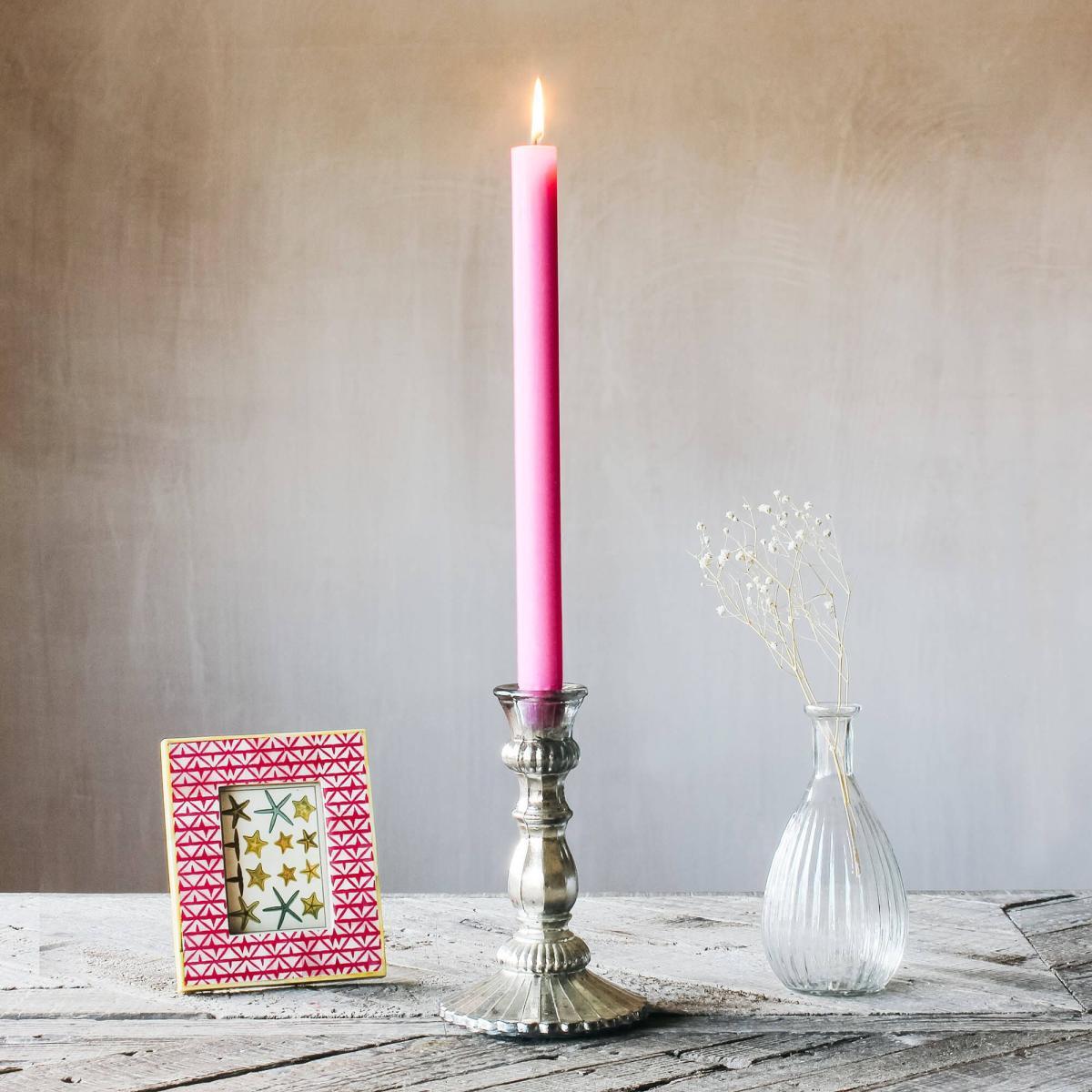 I love this silver glass candlestick for its sleek, understated elegance. It works beautifully in both modern and vintage-inspired interiors, adding a touch of sophistication without overpowering other décor elements. It's particularly effective when paired with minimalist tableware or placed on a rustic wooden surface to create a balanced contrast. For practical styling, consider using it as part of a centrepiece with other candles at varying heights, or combine with vintage accessories for a layered look. Its versatile design makes it an easy way to elevate any space, whether in a dining room, living area, or even a cosy nook.