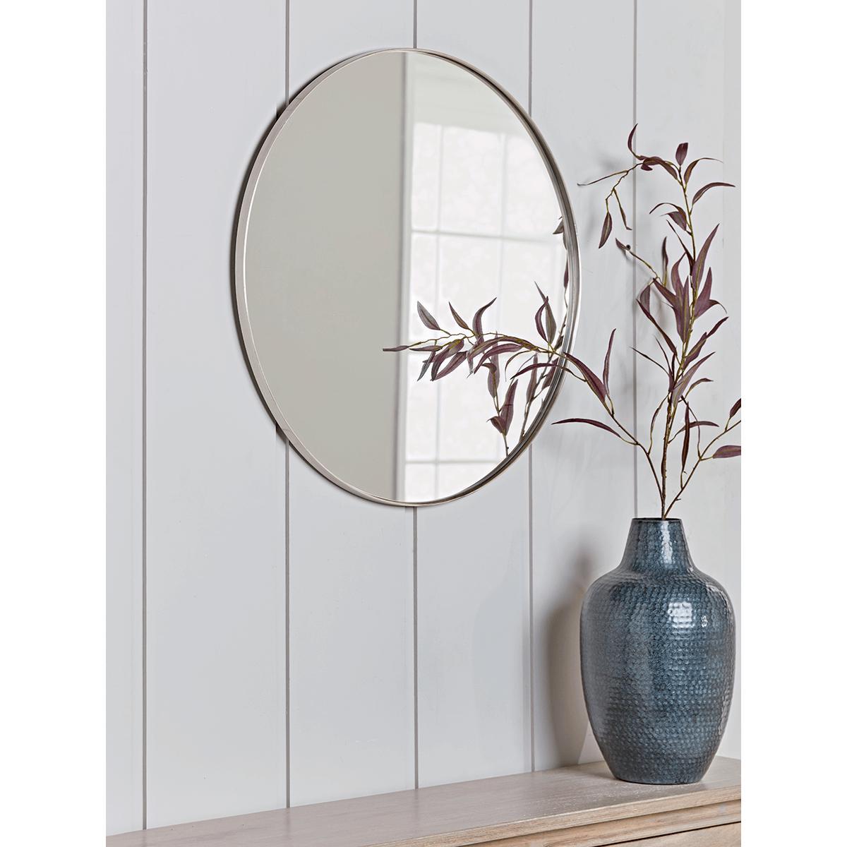 Antique Silver Slim Frame Round Mirror - Medium