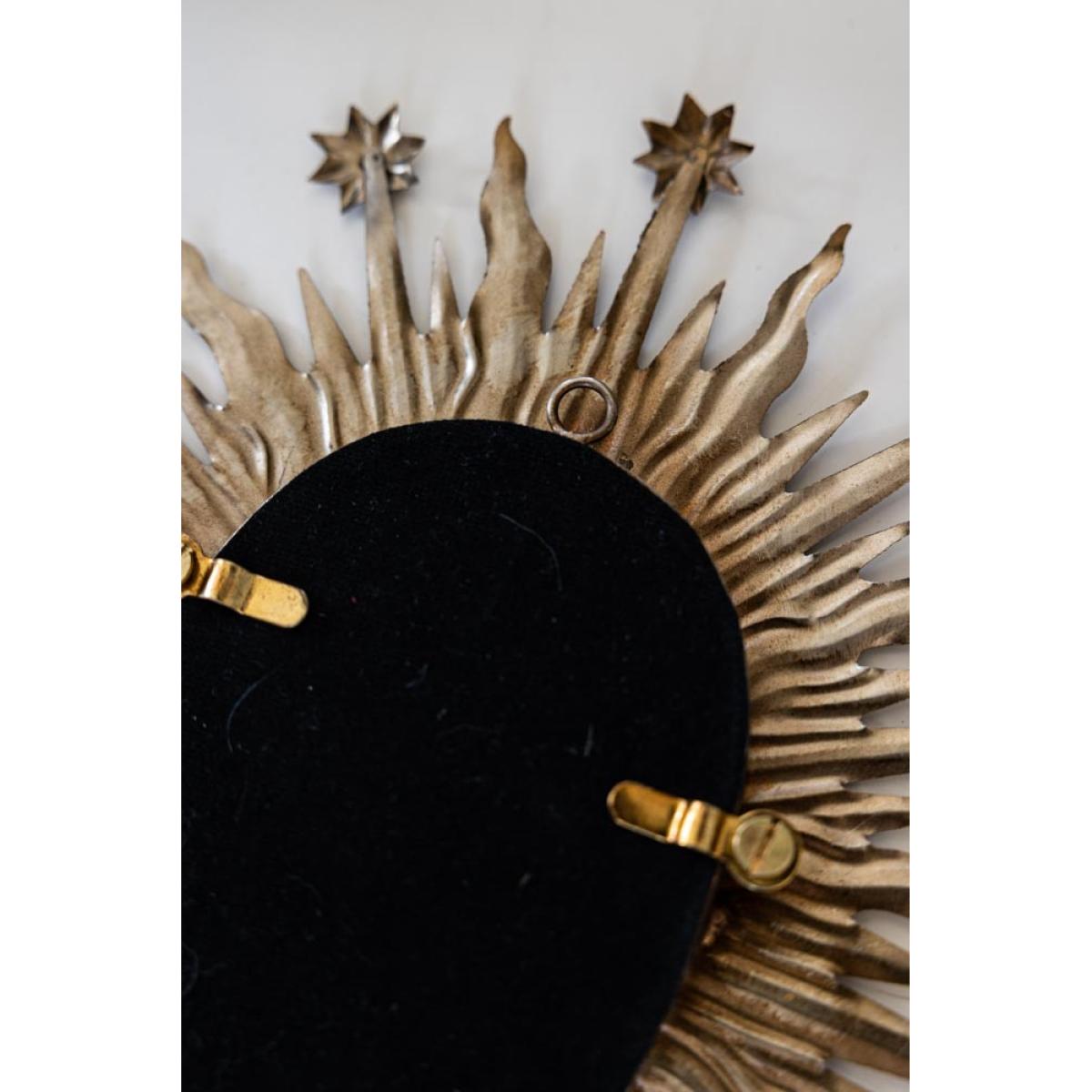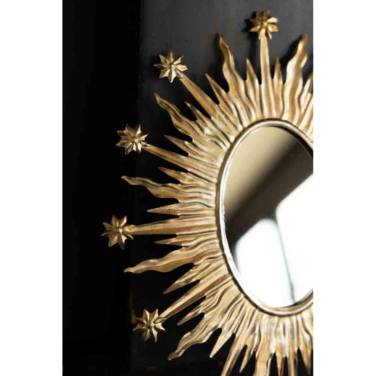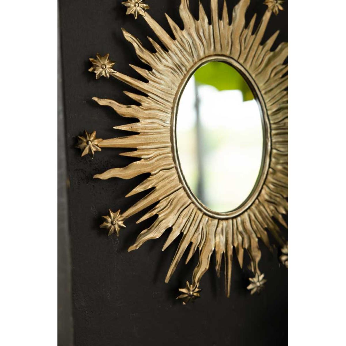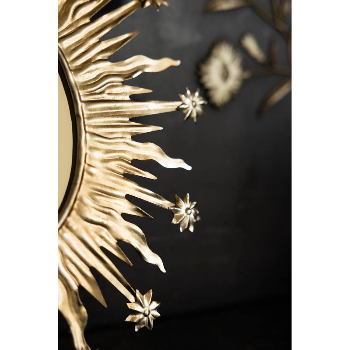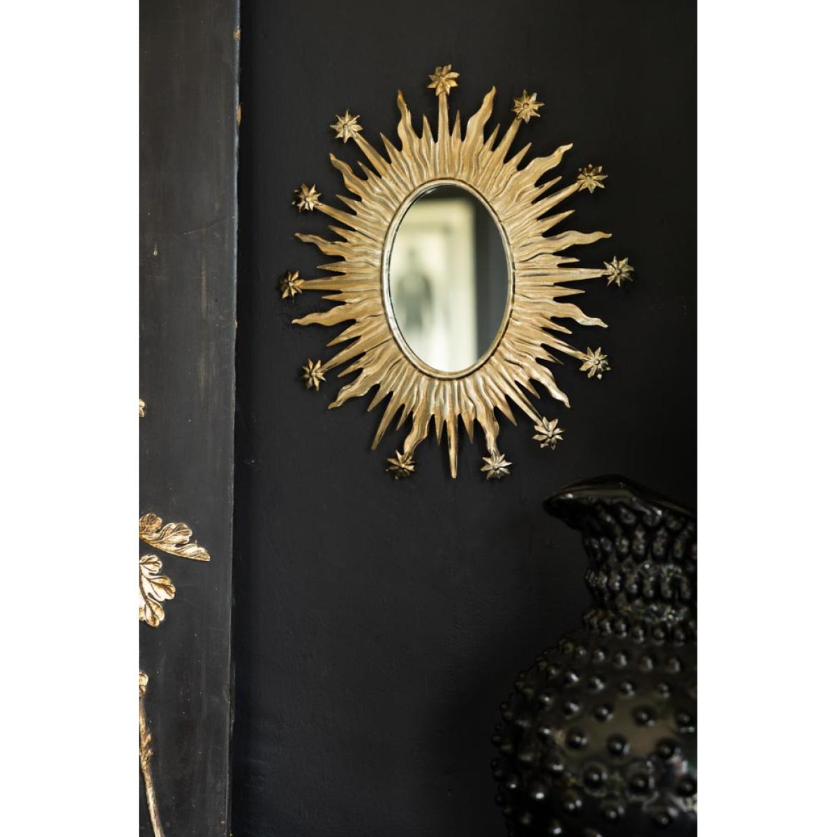 The Antique Silver Sunburst & Stars Mirror reveals the magical effect that a mirror can have in our homes. As the ultimate success story for where practicality and beautiful design combine, mirrors – large or small – reflect light back into the room and function as a piece of fabulous wall art. Proof that often it’s the smallest of objects that create the most impact, the sunburst and stars mirror reveals a beautiful decorative metal frame in an antique finish that brings together the best of gold and silver. Inspired by the captivating scenes of sunbeams and shooting, the wall mirror captures the magic of where nature meets emotion. A glamorous addition to your shelves or gallery wall, style the small oval mirror anywhere from your living room to the bedroom to elevate your everyday view.- Metal mirror with a sunbeam and star decorative frame - Measures: H24cm x W20.5cm- Includes a metal ring for hanging on the wall - Please take care when handling and unpacking, as the edges can be sharp
