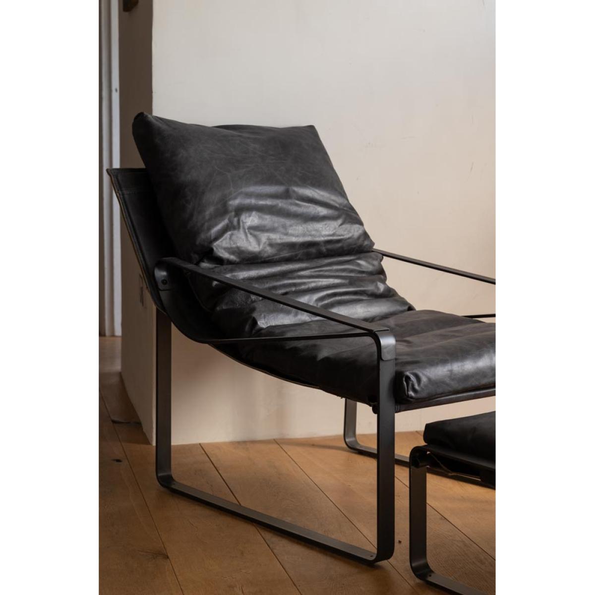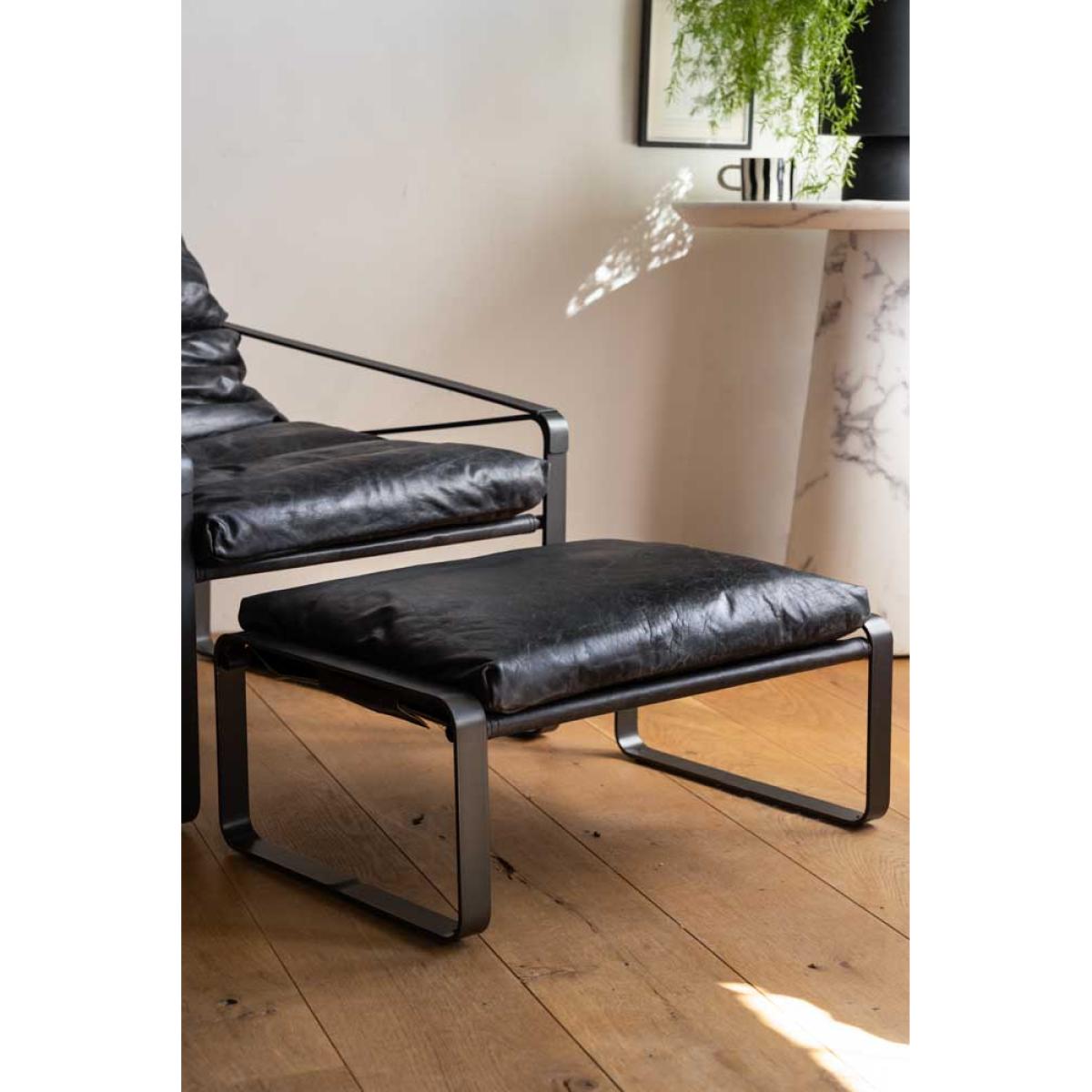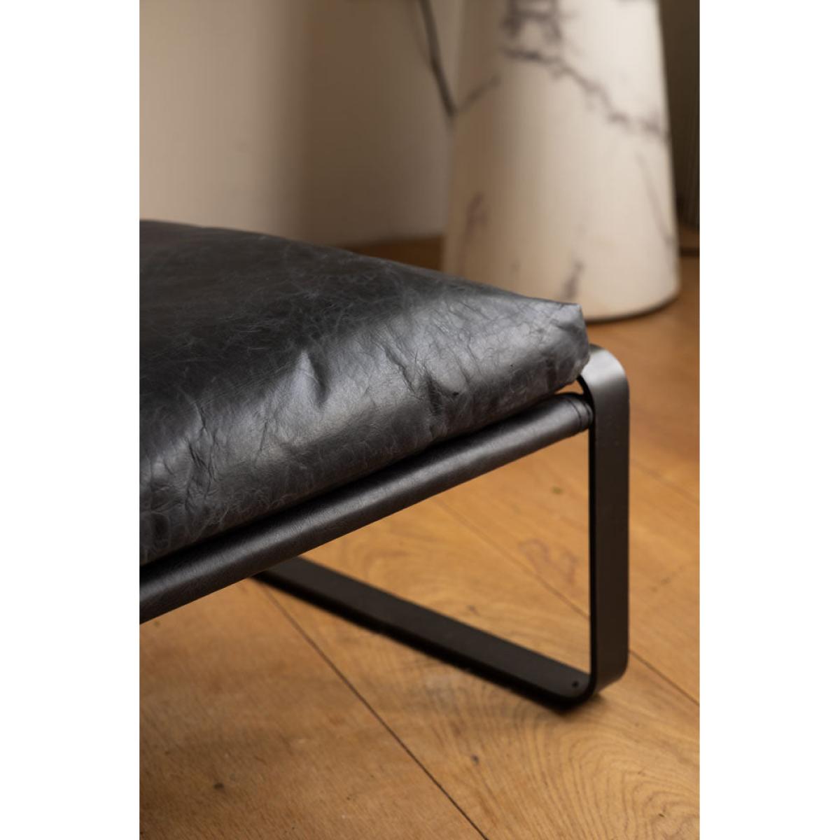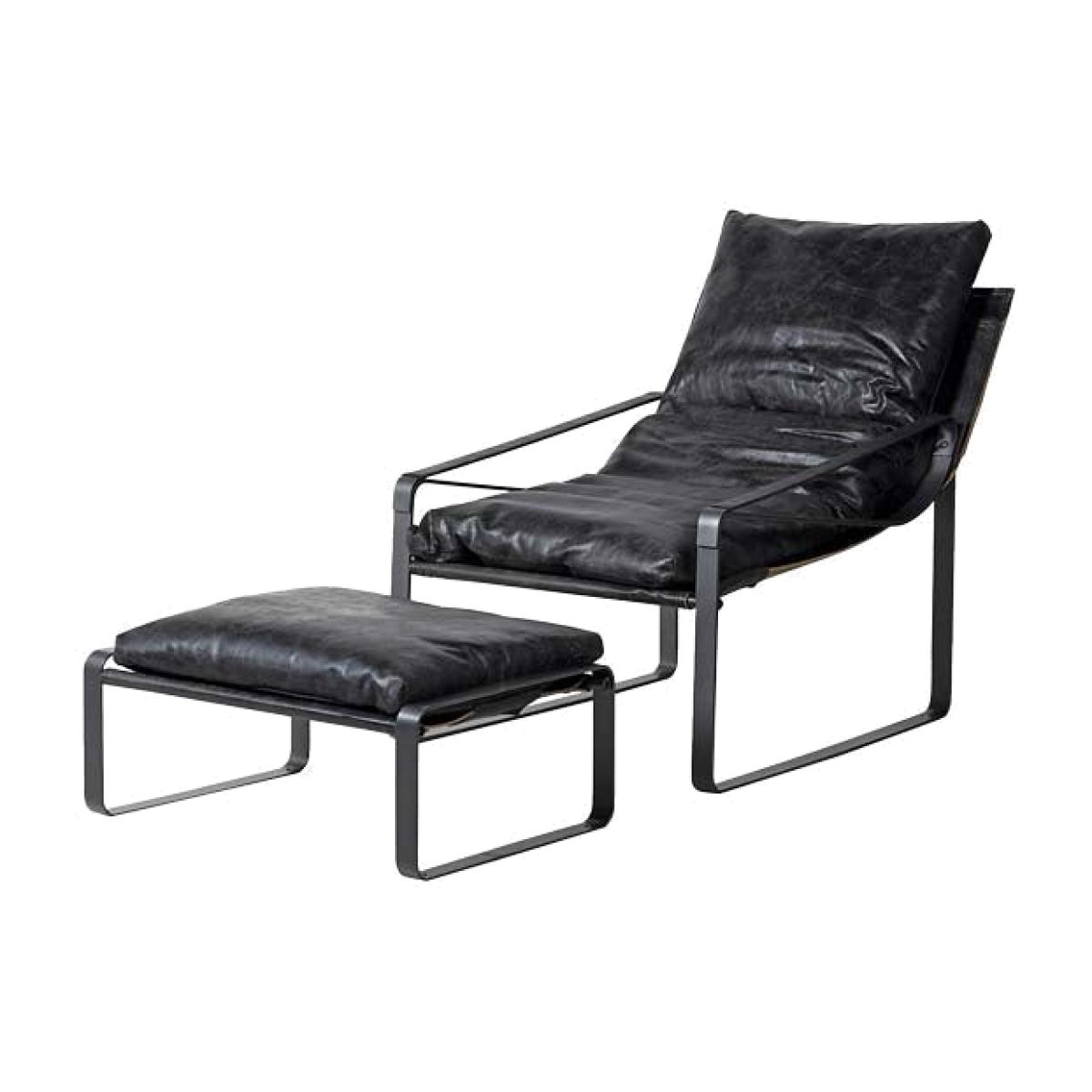 - Leather lounge chair & footstool with an iron metal frame- Leather lounger measures: H91cm x W69cm x D90cm- Leather footstool measures: H32cm x W68cm x D46cm- Care instructions: Please ensure that the room has good ventilation and do not place your Antique Slate Leather Lounger & Stool in direct sunlight or near to heat sources. Please avoid contact with sharp objects and avoid any liquids that might stain the surface, such as ink, nail polish etc. Please keep the leather surface dry, and in the event of a spillage, we recommend wiping the leather with a soft cloth to avoid damage. Please do not use alcohol wipes with this product, as it will cause the leather to fade. Leather should be cleaned/treated regularly using a professional leather cleaning cream/agent.
