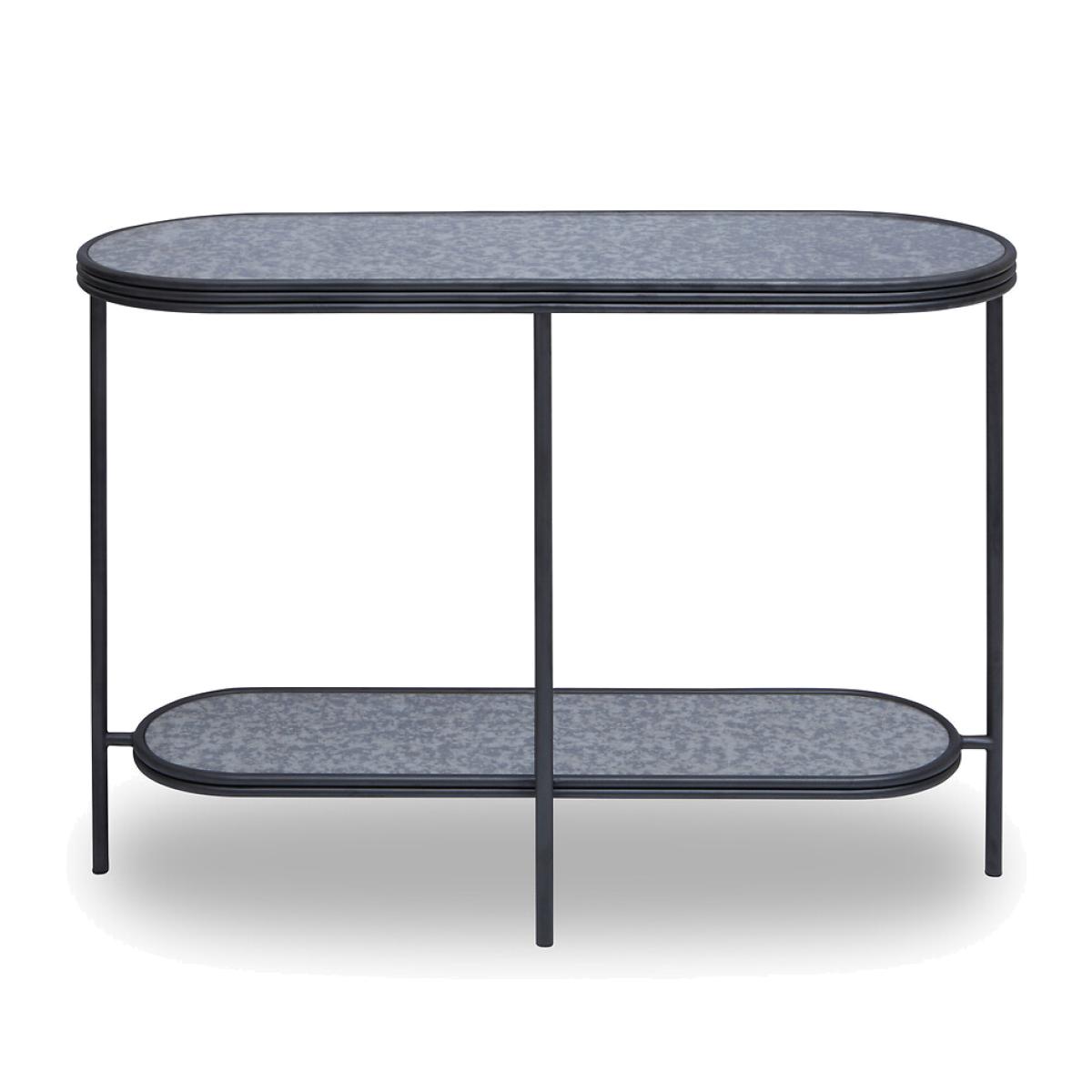 This two tier console table has a rectangular design with rounded oval corners. The sleek metal frame contrasts the antique mirrored top with a matching lower shelf offering open storage - perfect for tidying away hallway or living room clutter!Product details Delivered fully assembled Product Composition - Glass, Metal, Product Dimensions - 38 cm x106 cm x77 cm , Weight - 10.4 KGPackage Dimensions - 109 cm x 41 cm x 9 cm, Weight 11.5 kg. This product will be dispatched by one of our trusted suppliers. You’ll be contacted by their selected courier about your delivery. PREMI01
