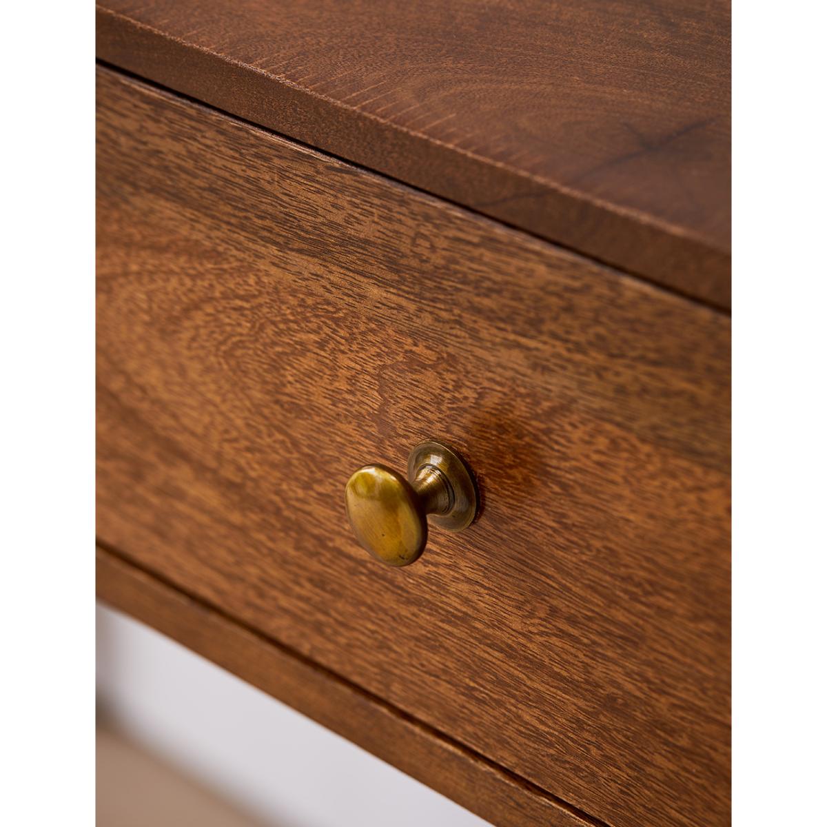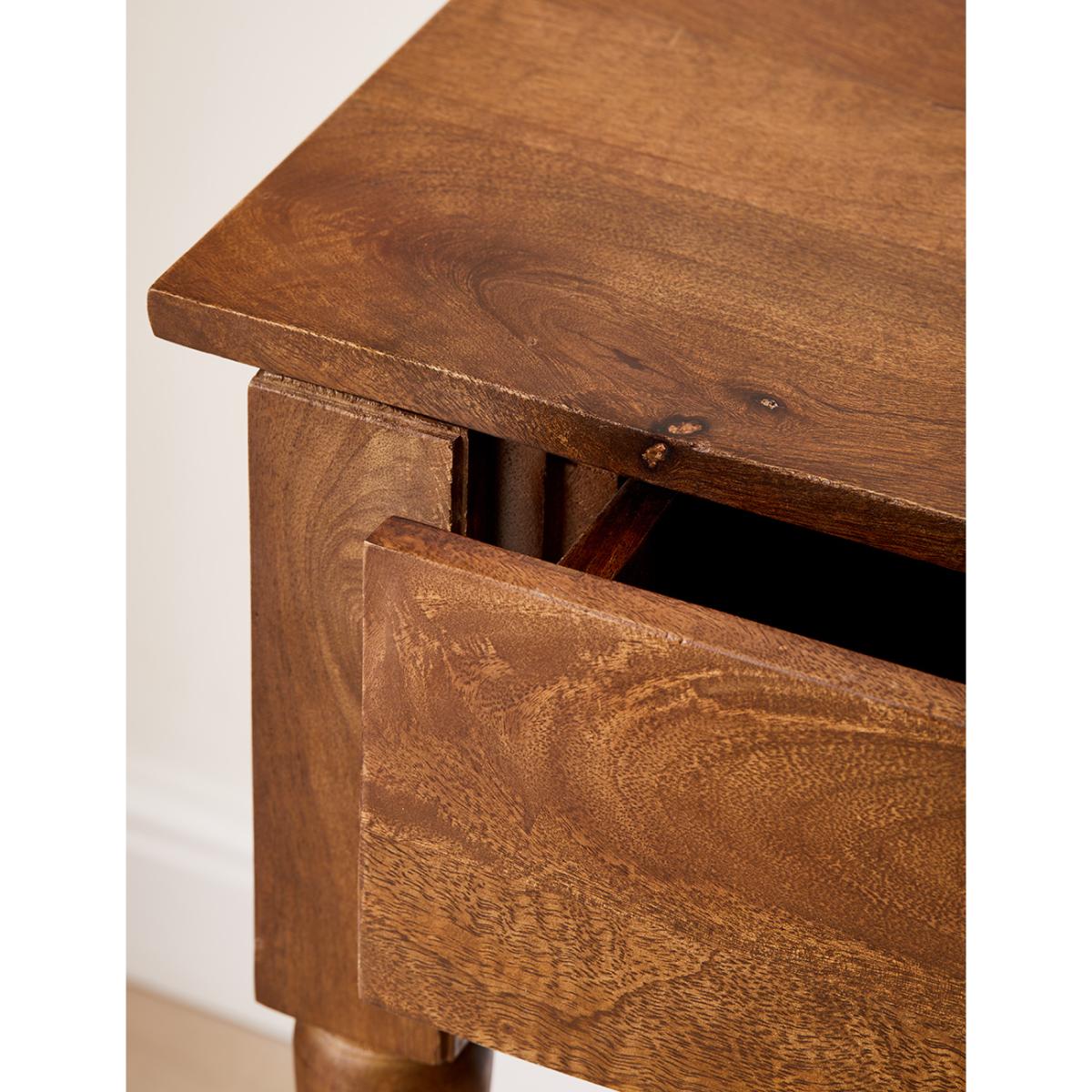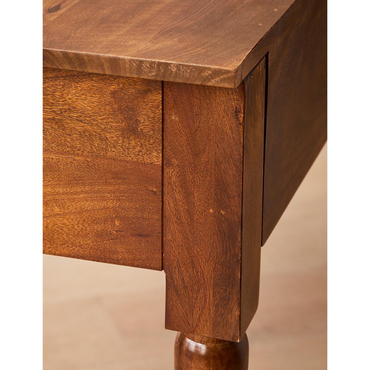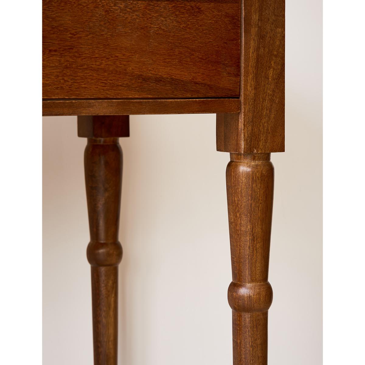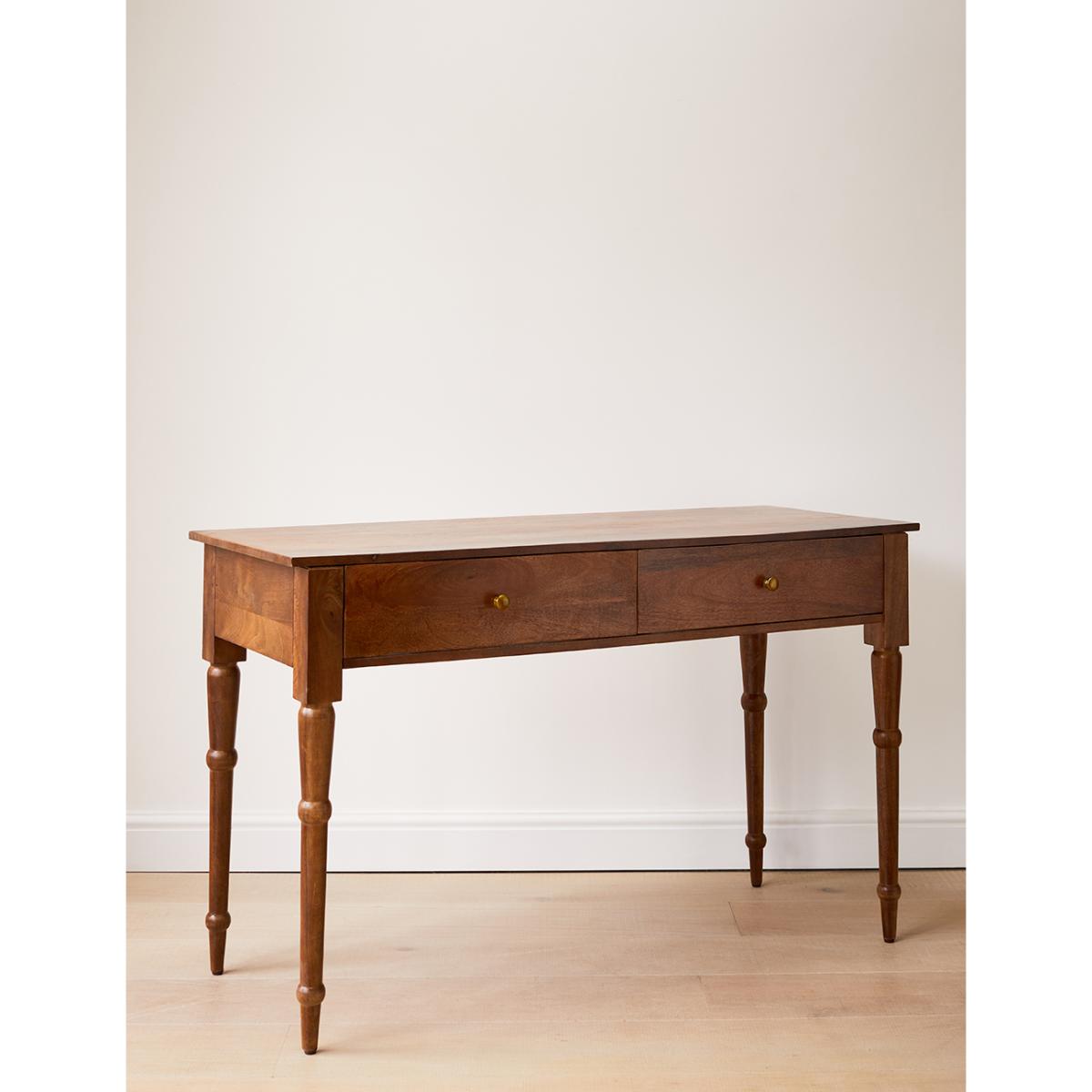 Embrace classic interior design with our Antique Style Mango Wood Console Table. Crafted from mango wood and adorned with elegant brass handles and spindle legs, this piece seamlessly merges rustic aesthetics with a modern twist. The large tabletop offers ample space for showcasing your favourite decor items, while the two spacious drawers provide plenty of storage space. This console table is completely versatile and can double up as a desk or dressing table whilst looking great in any room in the home.