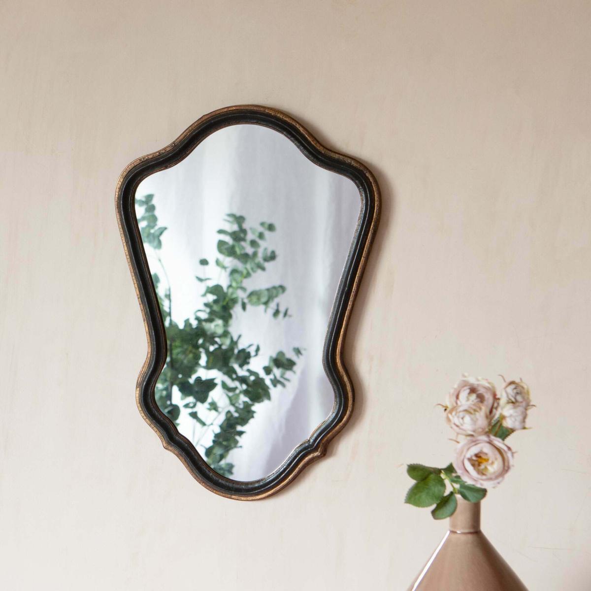 I love this black and gold mirror for its versatile vintage charm, making it a fantastic statement piece in both traditional and eclectic interiors. Its antiqued finish gives it a slightly weathered look that adds character without feeling overly formal, so it works well in hallways, living rooms, or bedrooms where you want to create a cosy, curated feel. For styling tips, consider pairing it with warm-toned furnishings or textured textiles to highlight the gold accents. It can also act as a focal point above a console table or fireplace, and its unique shape lends visual interest in spaces that need a touch of personality. Just be mindful of placement-hanging it at eye level ensures reflection and light bounce are maximised.