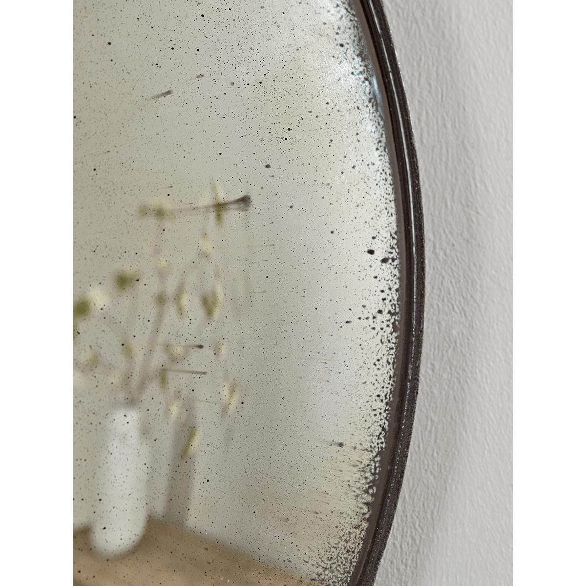 I love how the antiqued finish on this convex mirror adds a vintage yet contemporary touch, making it a versatile piece for various interiors. It works particularly well in rustic, industrial, or shabby chic schemes, but can also introduce a charming focal point in modern or minimalist spaces. Styling tips include placing it above a console table or fireplace to create depth and reflect light, while pairing it with textured ceramics or greenery for an effortless layered look. Its convex shape not only adds visual interest but also amplifies light and space, making it ideal for smaller rooms or narrow hallways.