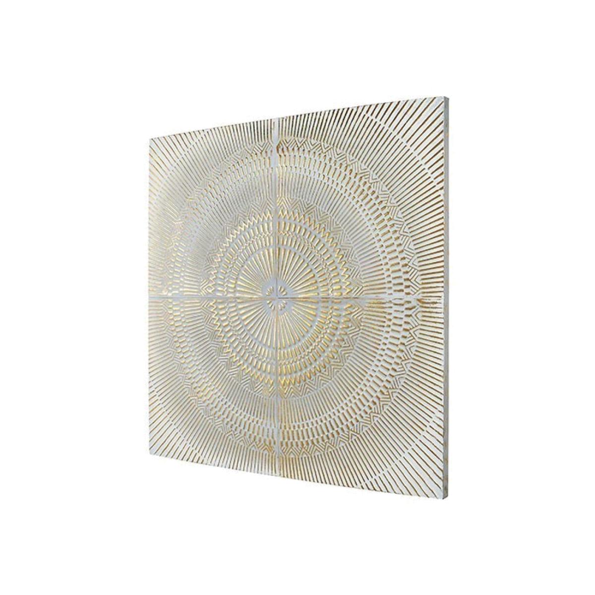 I love this piece because it brings a subtle yet impactful metallic accent to a space. The antiqued gold finish makes it versatile enough to work in both modern and traditional interiors, especially when paired with other textured or metallic elements. It’s ideal for creating a focal point above a sofa or in a hallway, and can be styled alongside neutral tones to add warmth or mixed with darker shades for contrast. Practical styling tips would be to hang it at eye level for maximum effect and consider pairing it with complementary accessories like gold-framed mirrors or lamps to create a cohesive look. Its size makes it a statement piece without overwhelming the room.
