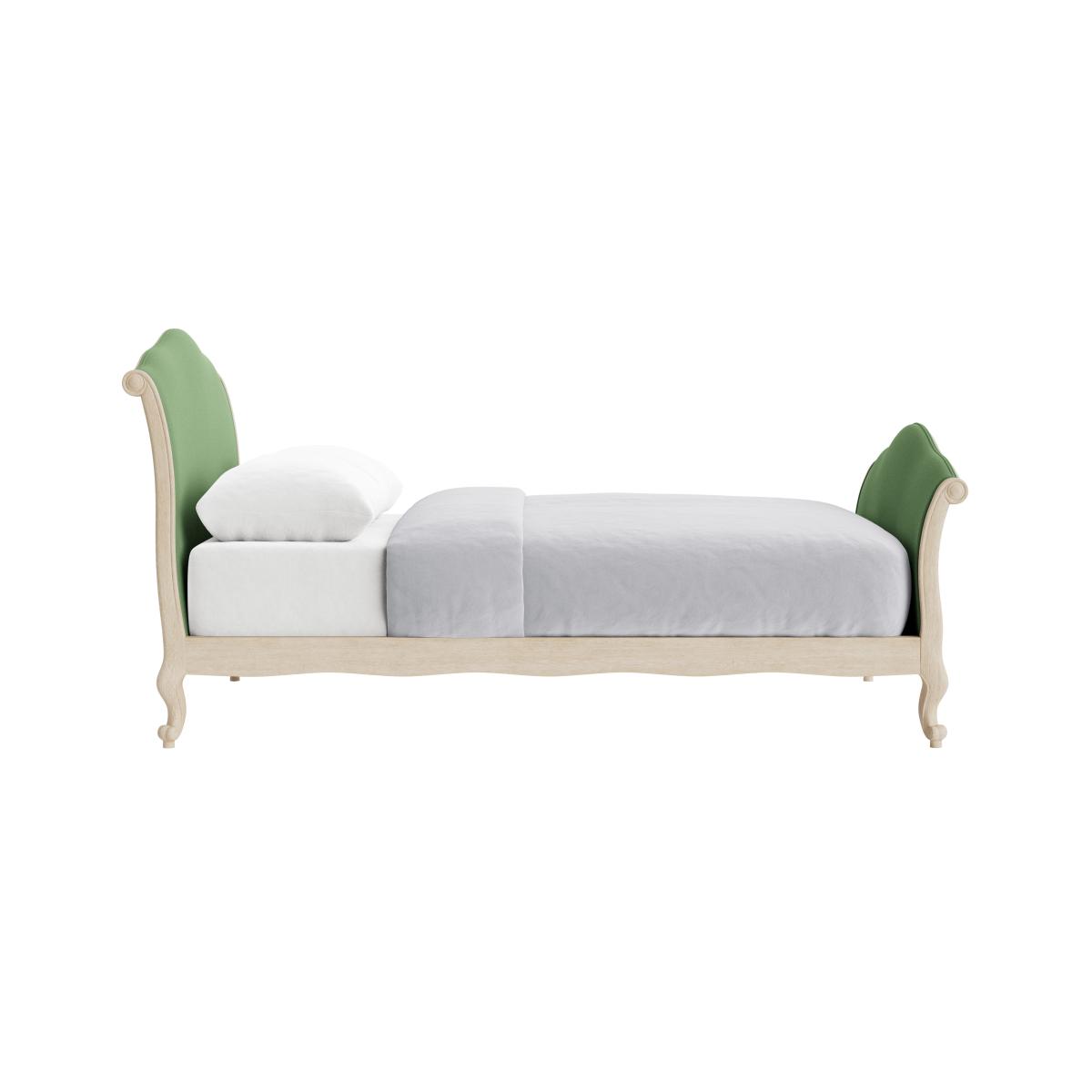This hugely popular French bed is made of solid lightly weathered oak. Upholstered in a fabric of your choice, it's also longer than the original antique version.