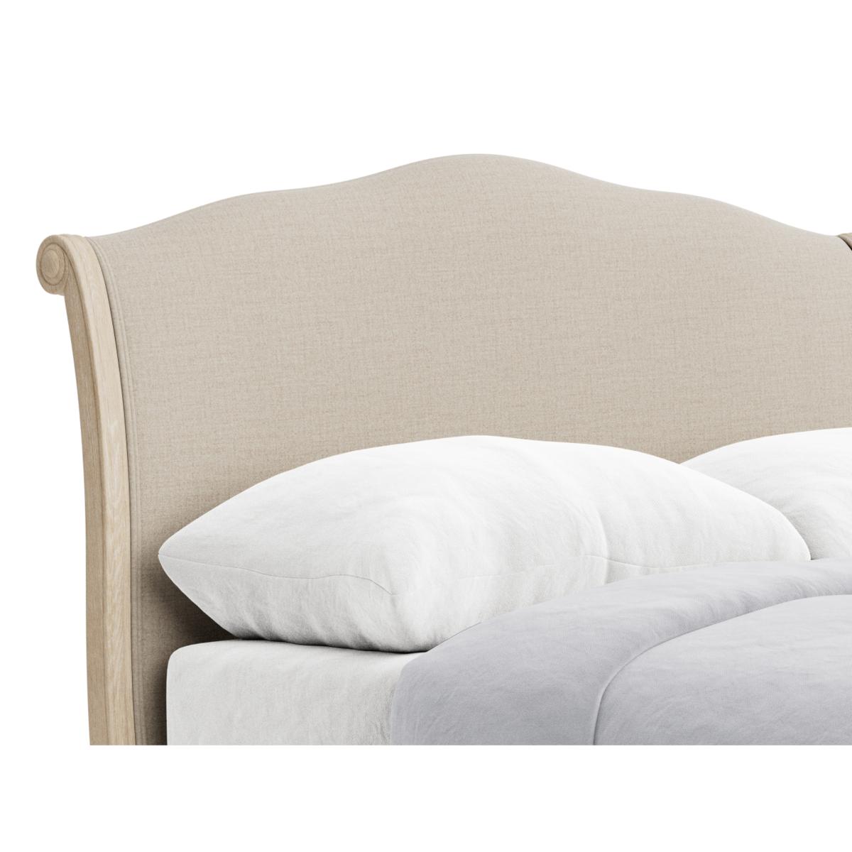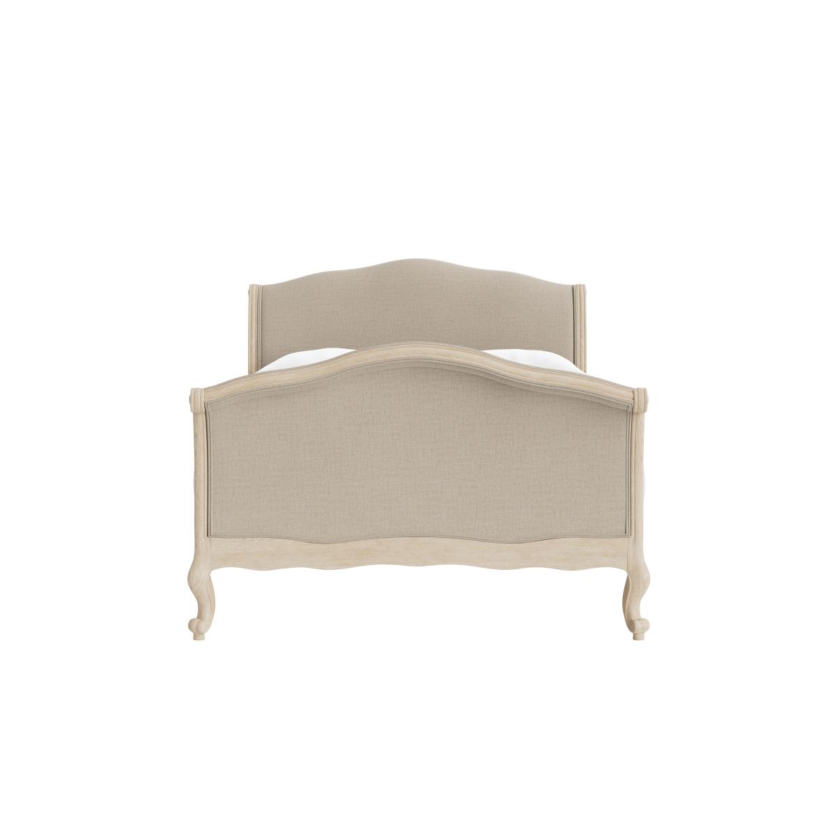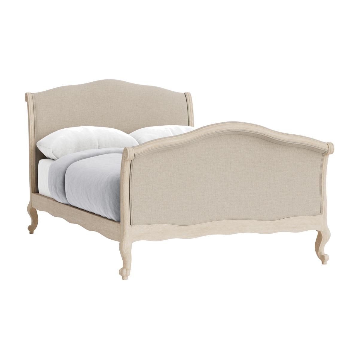 This hugely popular French bed is made of solid lightly weathered oak. Upholstered in a fabric of your choice, it's also longer than the original antique version.