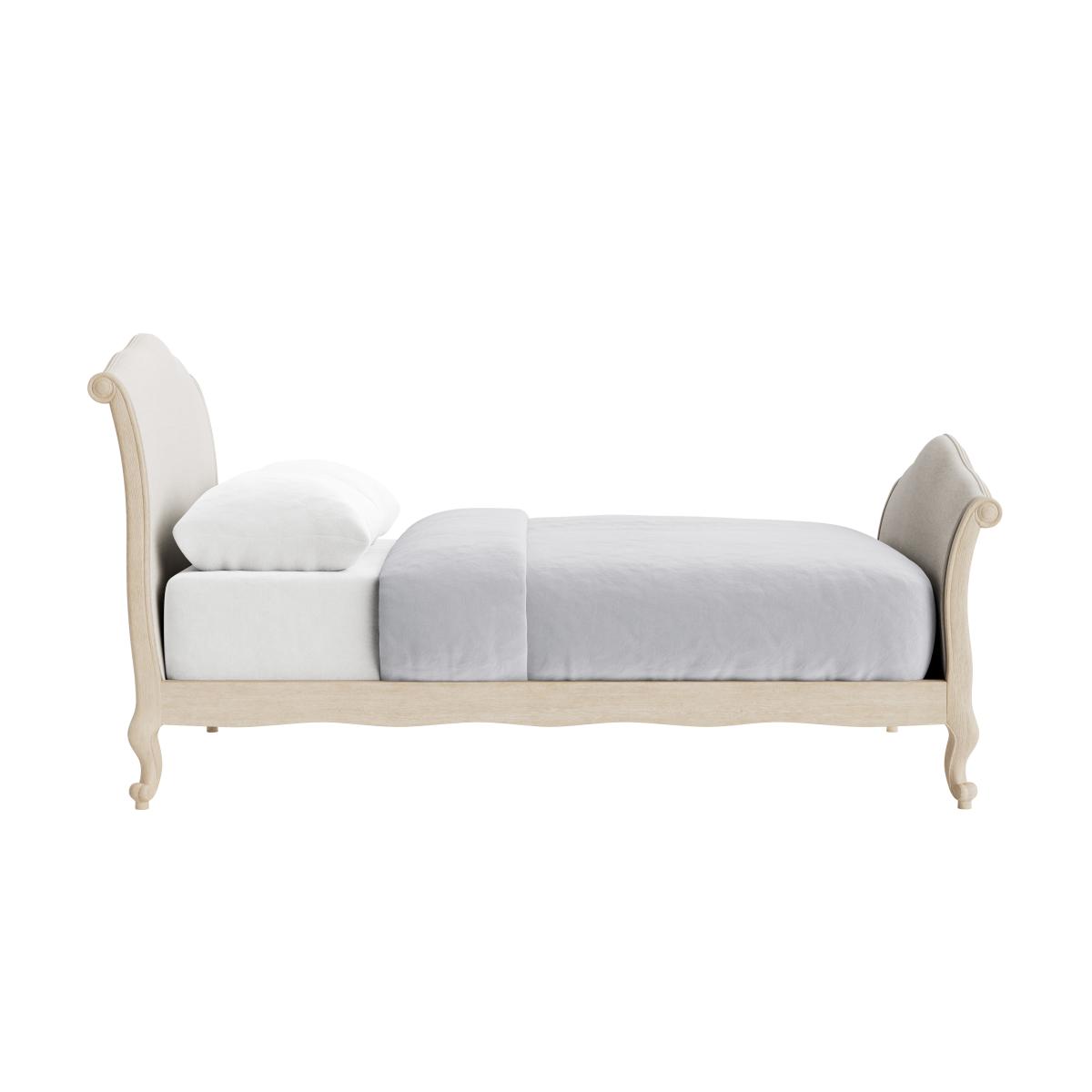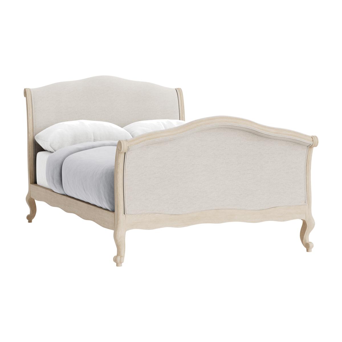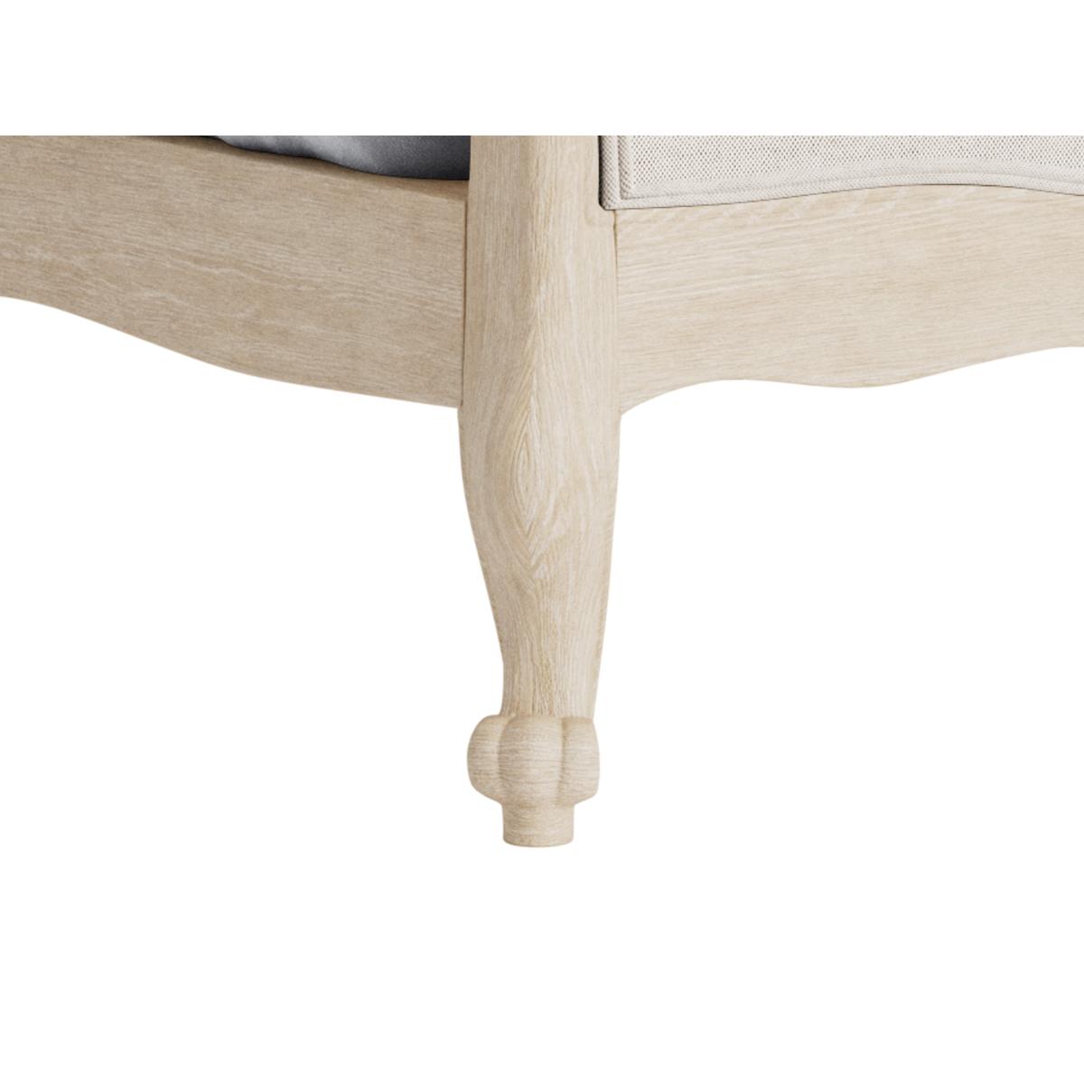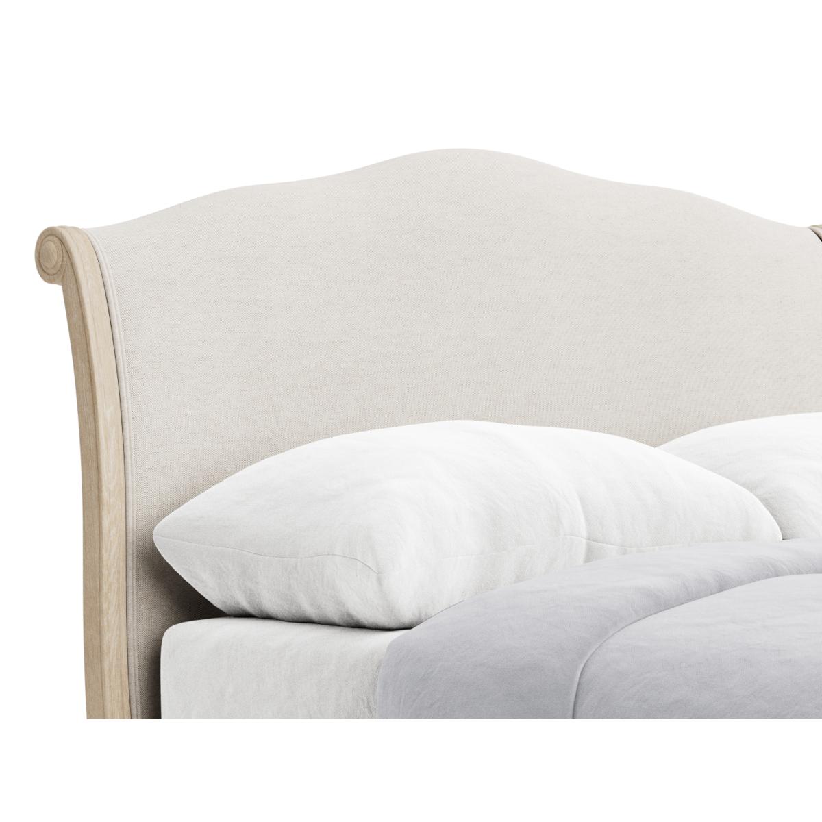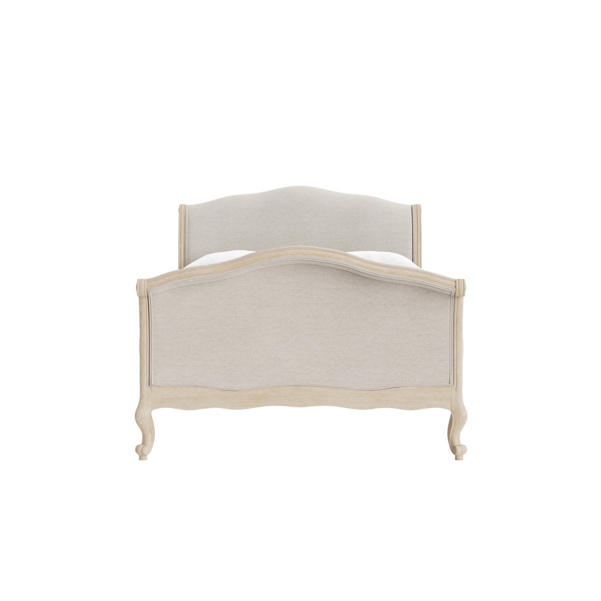 This hugely popular French bed is made of solid lightly weathered oak. Upholstered in a fabric of your choice, it's also longer than the original antique version.