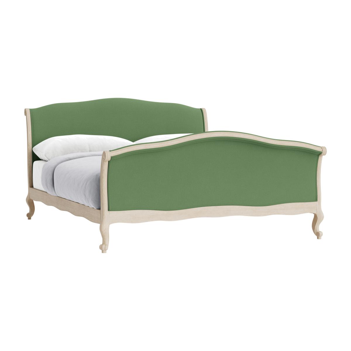 This hugely popular French bed is made of solid lightly weathered oak. Upholstered in a fabric of your choice, it's also longer than the original antique version.