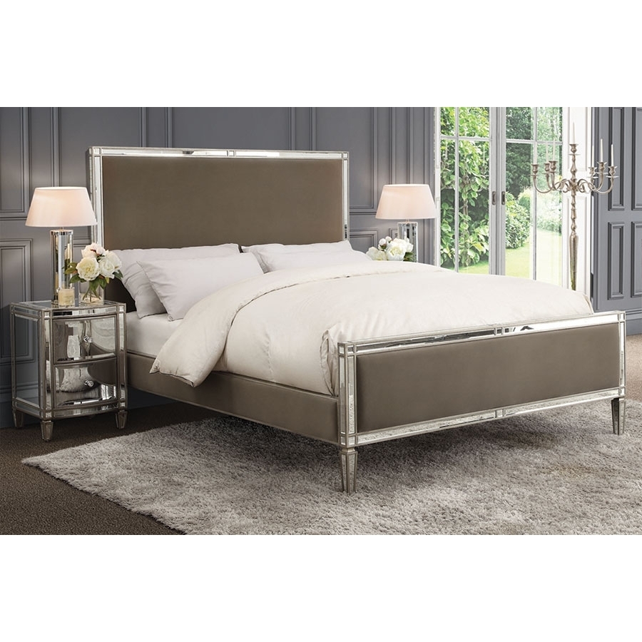 Antoinette is a stunning statement bed upholstered in soft, tactile velvet fabric. Featuring handcrafted bevelled mirrored panels inlaid into an antique pewter effect wooden frame. Part of our comprehensive Antoinette furniture collection. Supplied with sprung, slatted base. Assembly required, approximately 10 minutes.