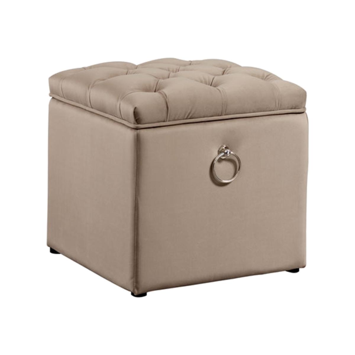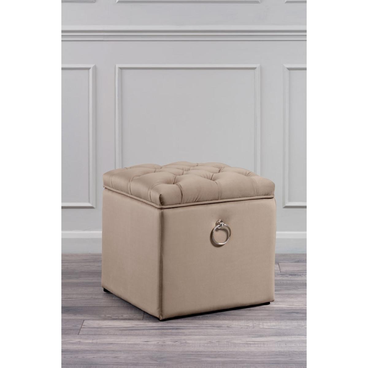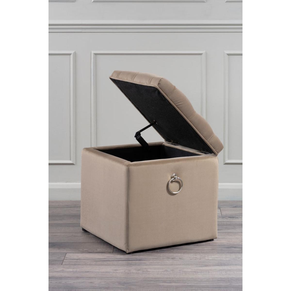 Footstool, dressing stool, occasional seat, storage container – this is a very versatile item. Two elegant ring handles for easy repositioning. Large internal storage space, ideal for storing cushions, blankets, magazines, books, remote controls, chargers etc. Comfortable deep buttoned top. Velvet upholstery fabric. Delivered assembled.