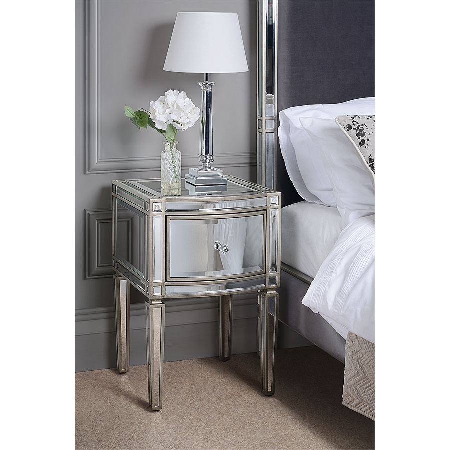 Antoinette Toughened Mirror One Drawer Bedside Table